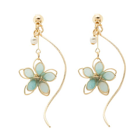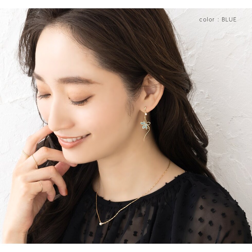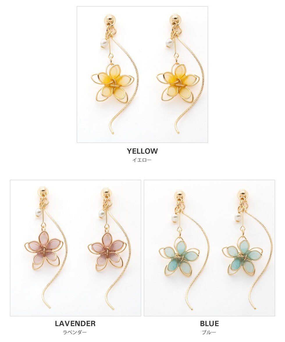ピアス レディース 揺れる フラワー ワイヤーフラワー 繊細 エポキシ 透け感 立体感 バックキャッチ パール ウェーブ バー ラベンダー cream dot ゆうパケット [ブルー_ピアス]