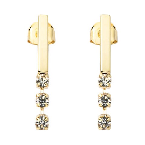 ビジューライン×メタルバーがさりげなく揺れるイヤリング/ピアス。動くたびに繊細に煌めくモチーフがお顔周りを華やかで上品な印象に仕上げてくれます。セレモニーはもちろん、デイリーコーデのクラスアップアイテムにも◎