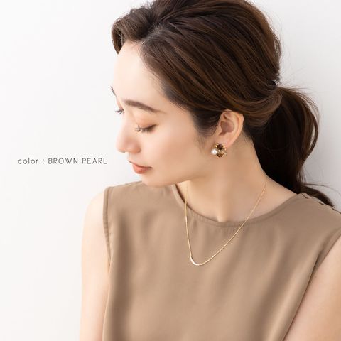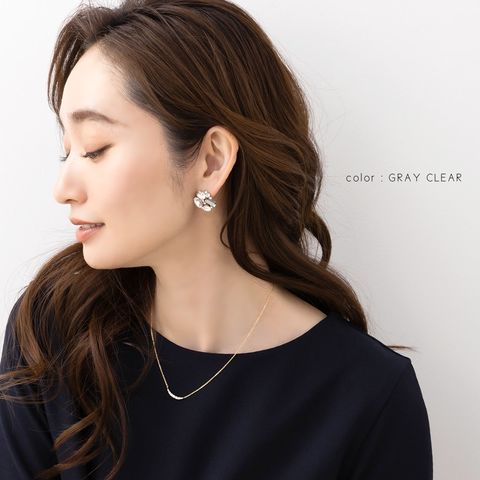 ピアス レディース スタッド キュービックジルコニア mixビジュー デコラティブ スクエア パール cream dot ゆうパケット [ブラウングレー_ピアス]
