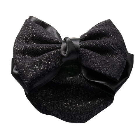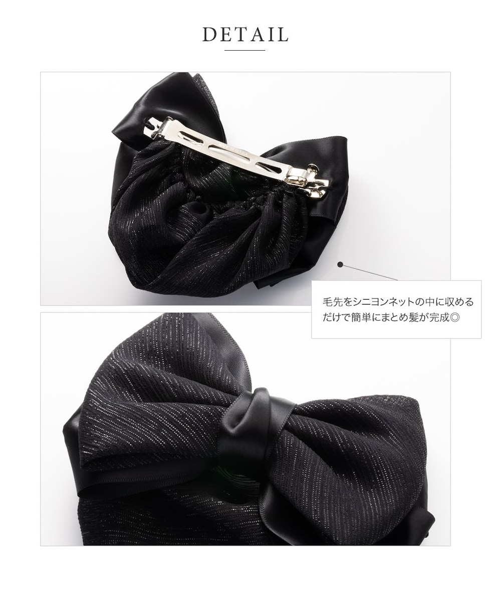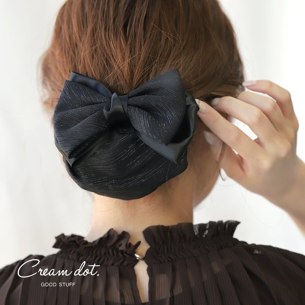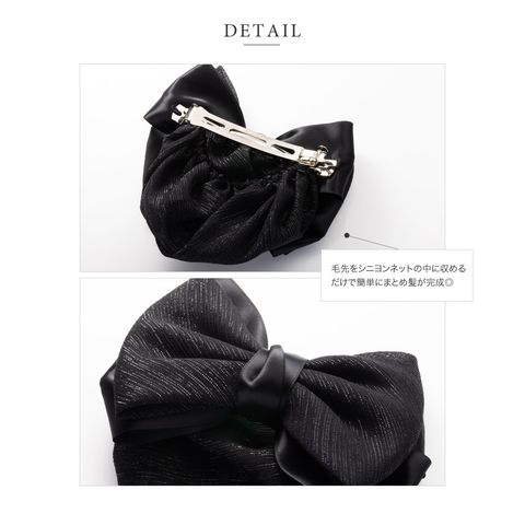ヘアアクセサリー レディース シニヨンネット バレッタ リボン お団子 シニヨン まとめ髪 髪留め お団子ネット お団子カバー ネット付きバレッタ 簡単 ラメ 銀糸 サテン調 ポニーテール ヘアアレンジ cream dot ゆうパケット [ブラック_ワンサイズ]