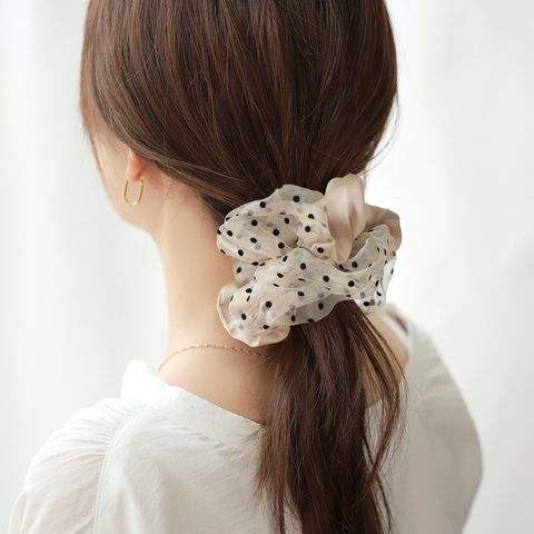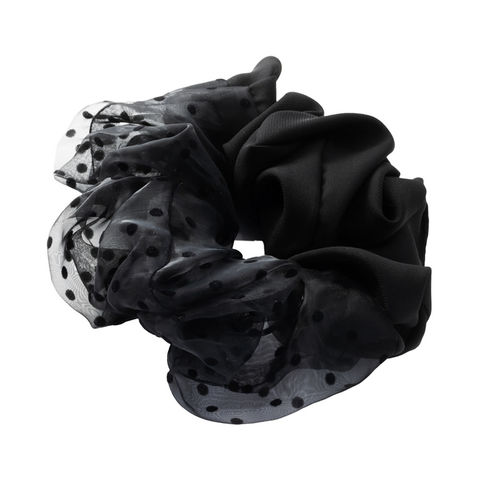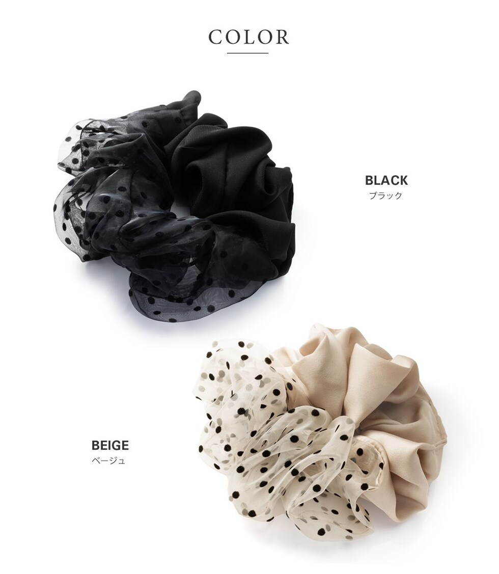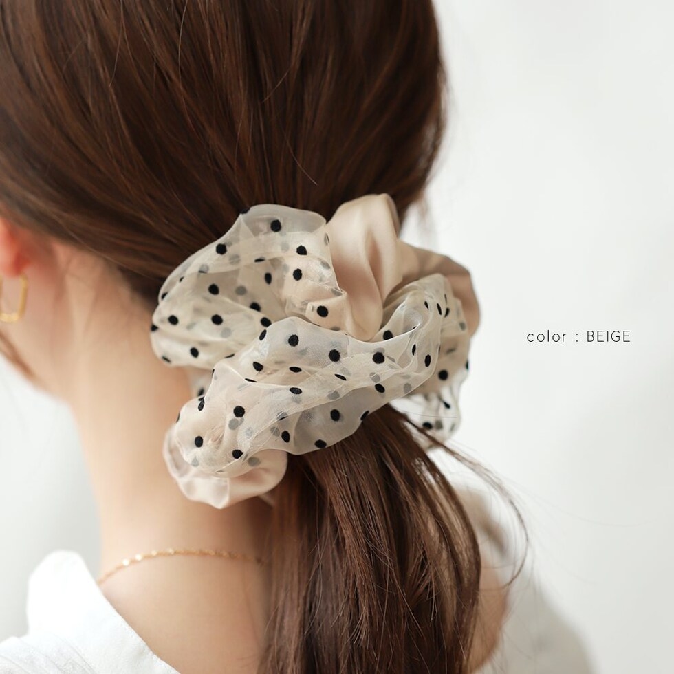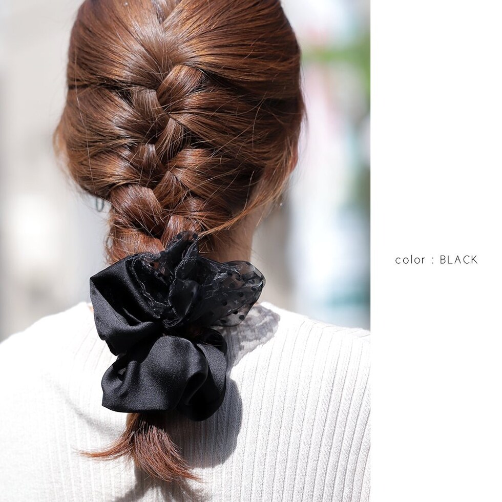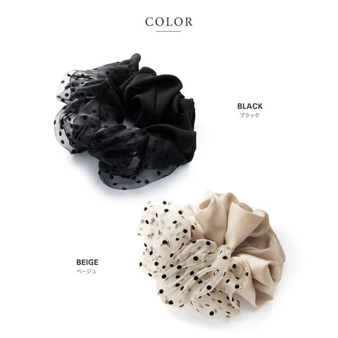 ヘアアクセサリー レディース シュシュ 軽い ボリューム 大きめ 小物 ファッション雑貨 髪留め まとめ髪 異素材 サテン調 オーガンジー 透け感 ドット 水玉 cream dot ゆうパケット [ブラック_ワンサイズ]