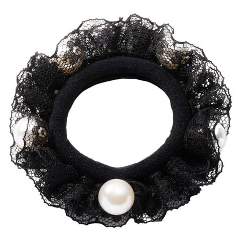 ヘアアクセサリー レディース ヘアゴム 髪留め まとめ髪 2タイプ レース パール フリル 跡がつきにくい ブラック cream dot ゆうパケット [B:ブラック_ワンサイズ]