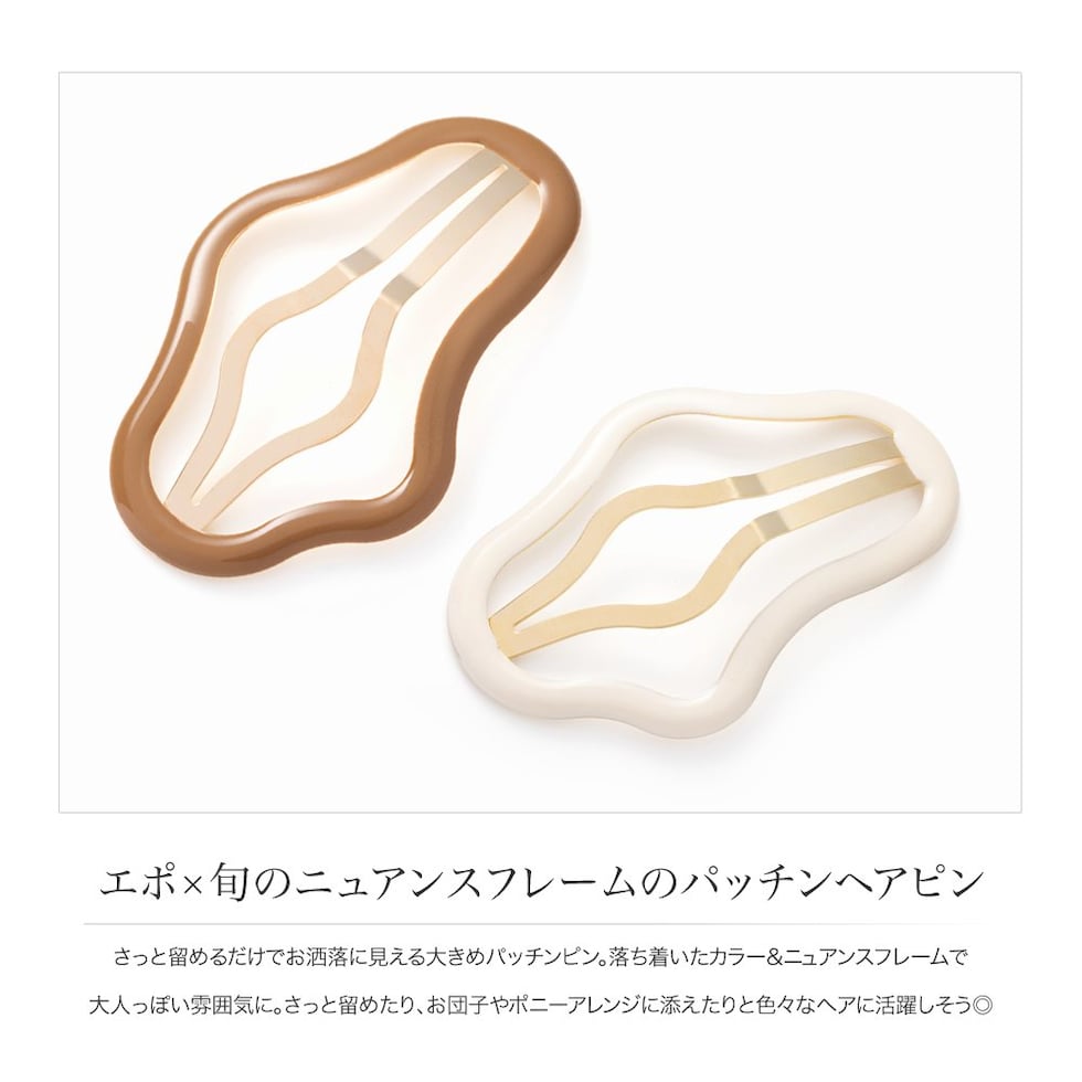 さっと留めるだけでお洒落に見える大きめパッチンピン。落ち着いたカラー&ニュアンスフレームで大人っぽい雰囲気に。さっと留めたり、お団子やポニーアレンジに添えたりと色々なヘアに活躍しそう◎