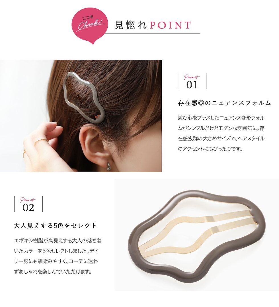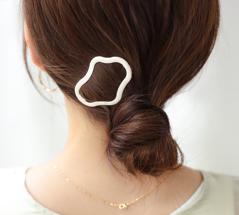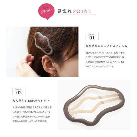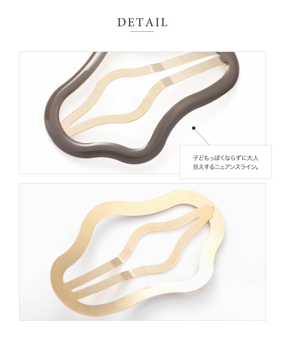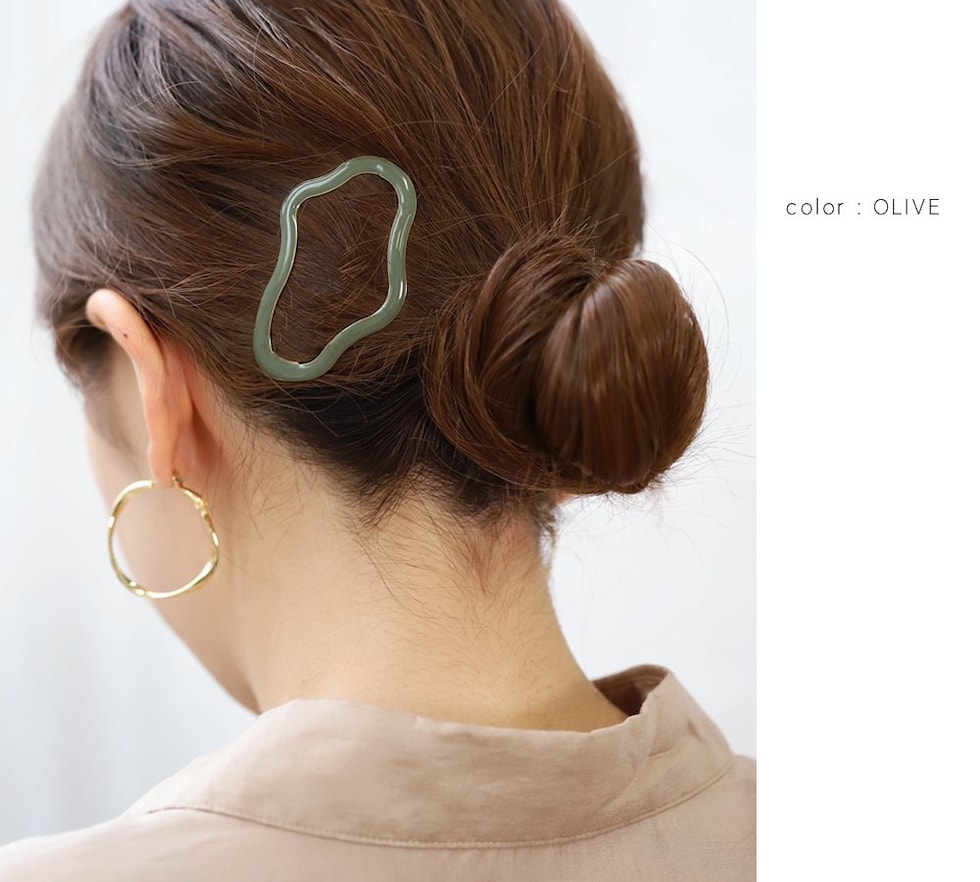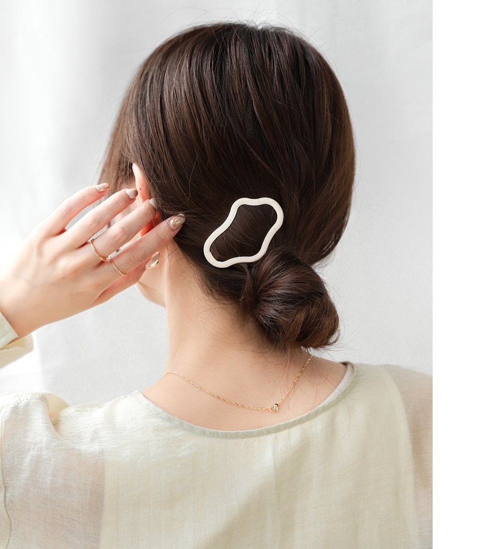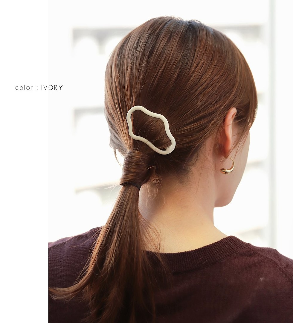 遊び心をプラスしたニュアンス変形フォルムがシンプルだけどモダンな雰囲気に。存在感抜群の大きめサイズで、ヘアスタイルのアクセントにもぴったりです◎