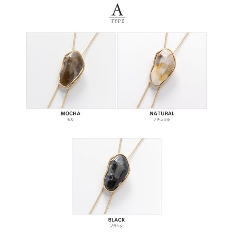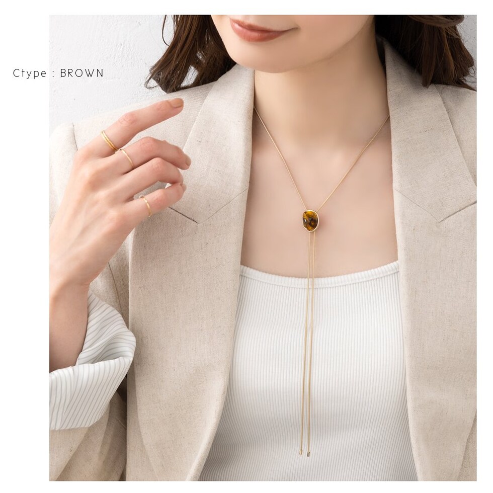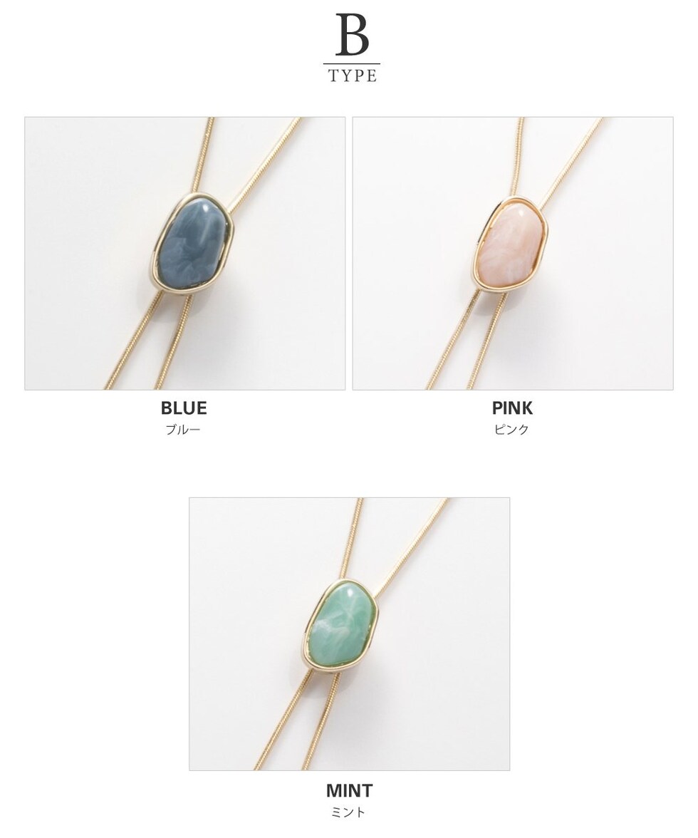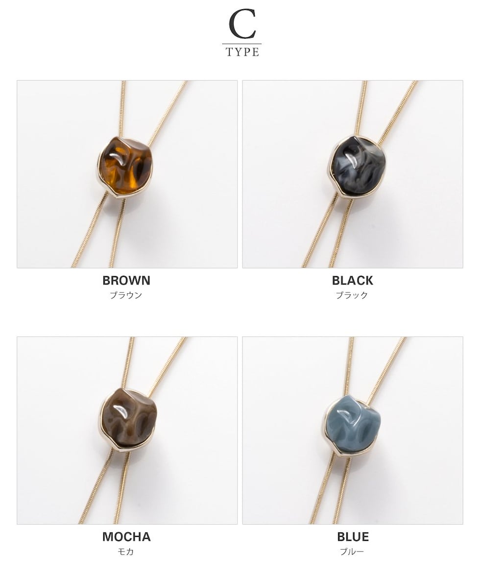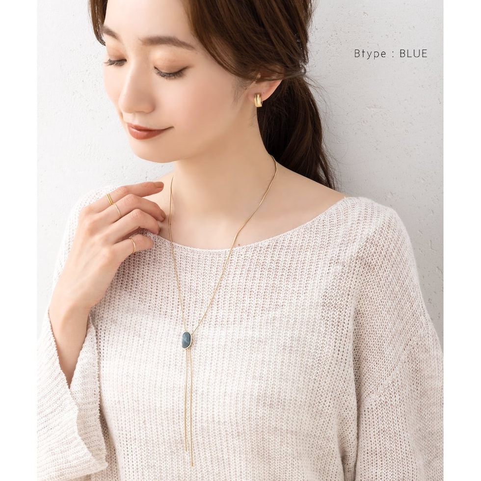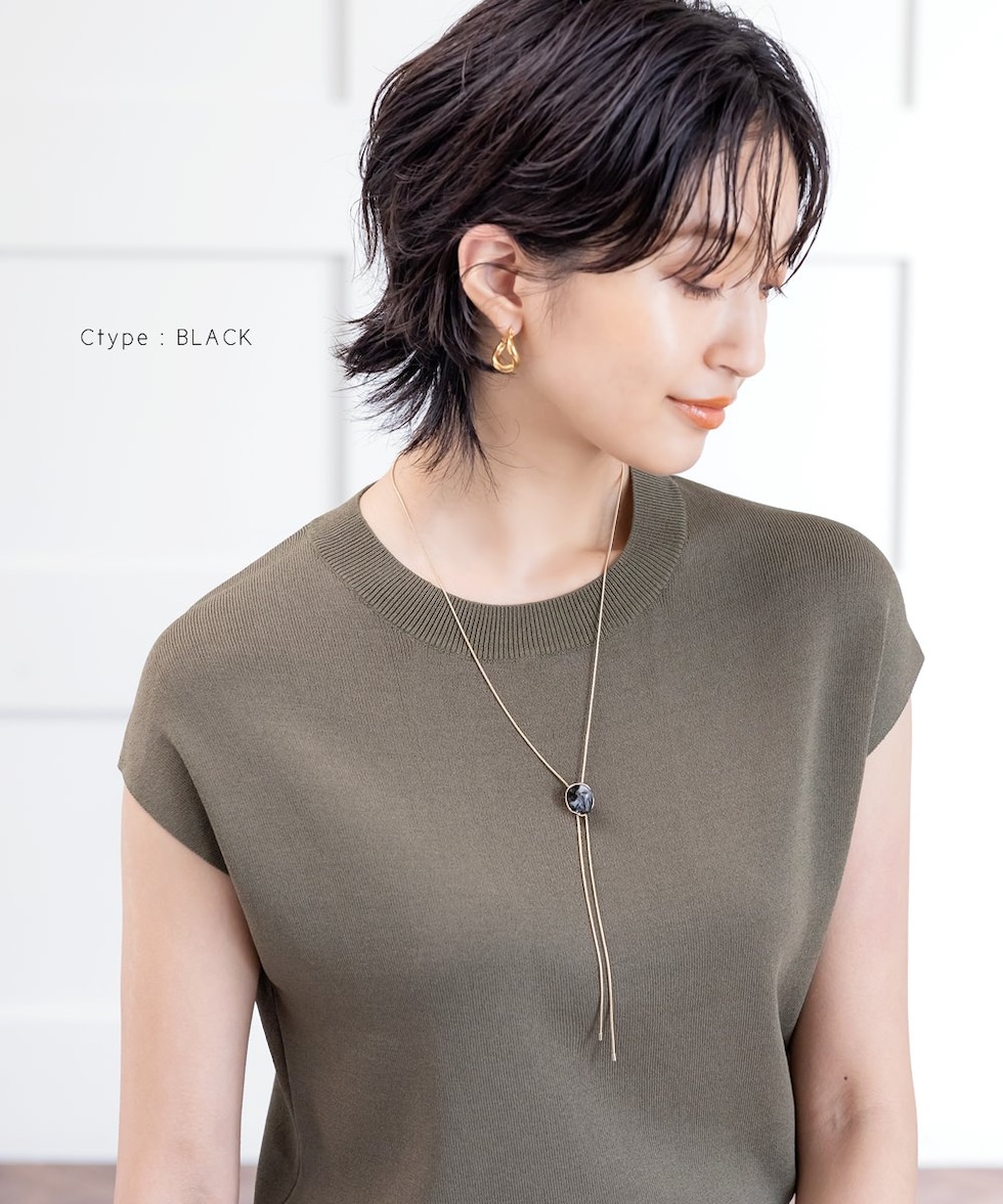 3タイプから選べるマーブル模様のモチーフが目を惹くループタイネックレス。こなれ感のあるタイシルエットは、身につけるだけで洗練された印象に◎スライドして長さ調節ができるので、お好みのバランスで楽しめます。