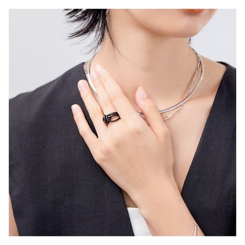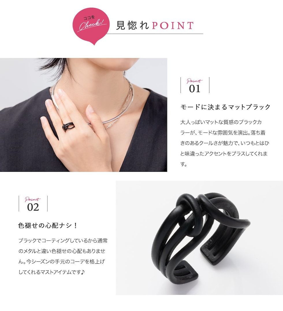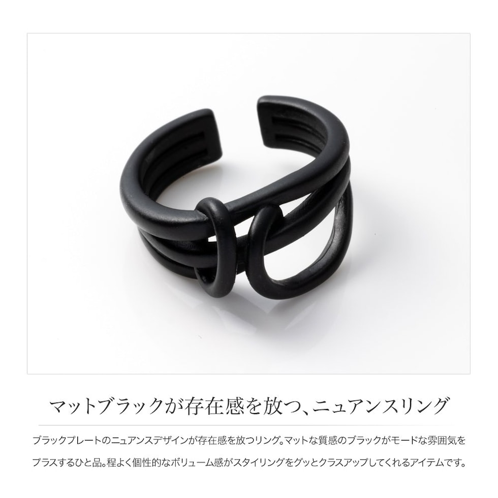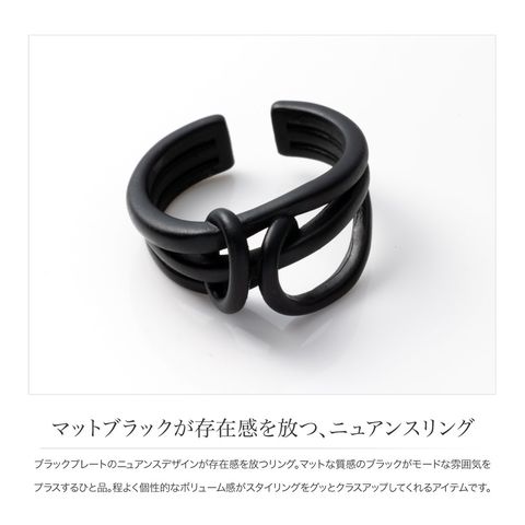 ブラックプレートのニュアンスデザインが存在感を放つリング。マットな質感のブラックがモードな雰囲気をプラスするひと品。程よく個性的なボリューム感がスタイリングをグッとクラスアップしてくれるアイテムです。