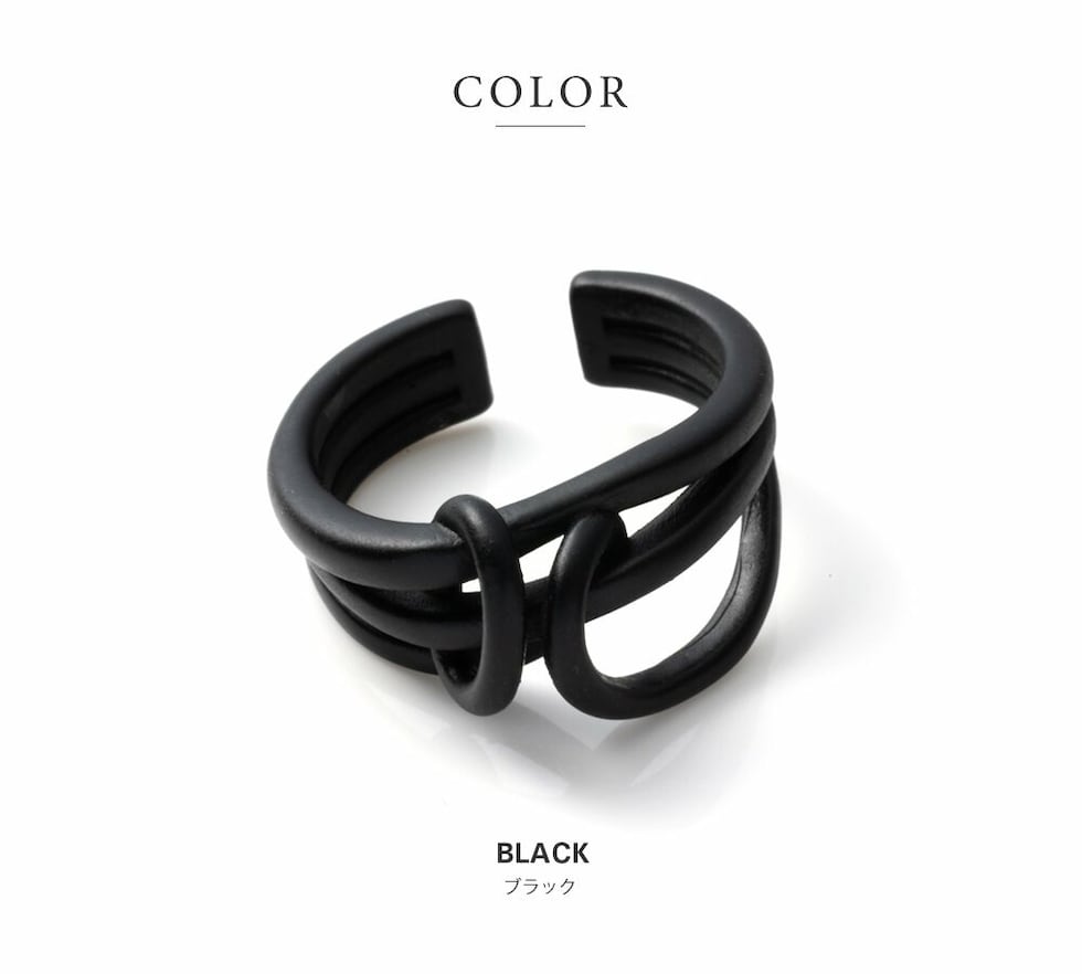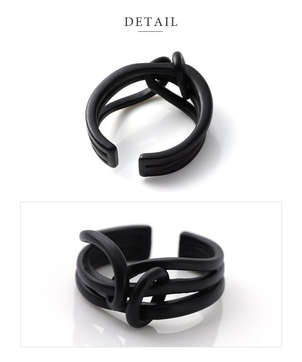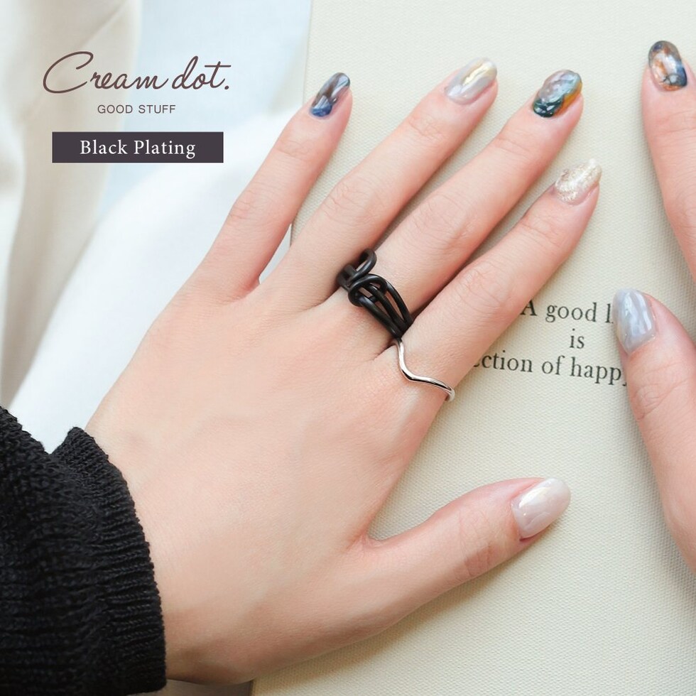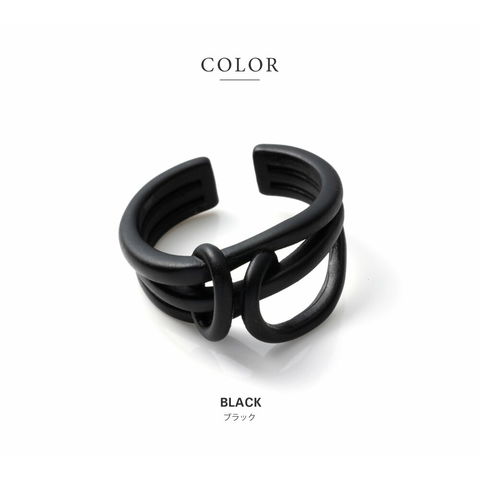 リング 指輪 レディース ブラックプレーティング ブラックコーティング クール ニュアンス 変形 クロス マット つや消し 艶消し ワイド オープンリング cream dot ゆうパケット [ブラック_13号]