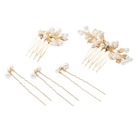 ヘアアクセサリー レディース 5点セット ヘアピン ヘアコーム ヘッドアクセサリー パール リーフ 葉 まとめ髪 髪飾り 花飾り ゲスト cream dot ゆうパケット [ゴールド_アソート]