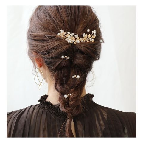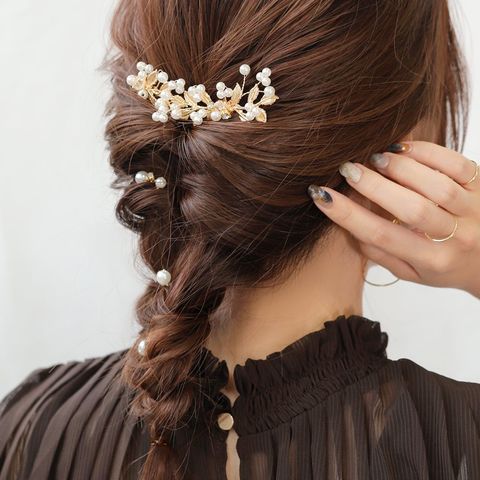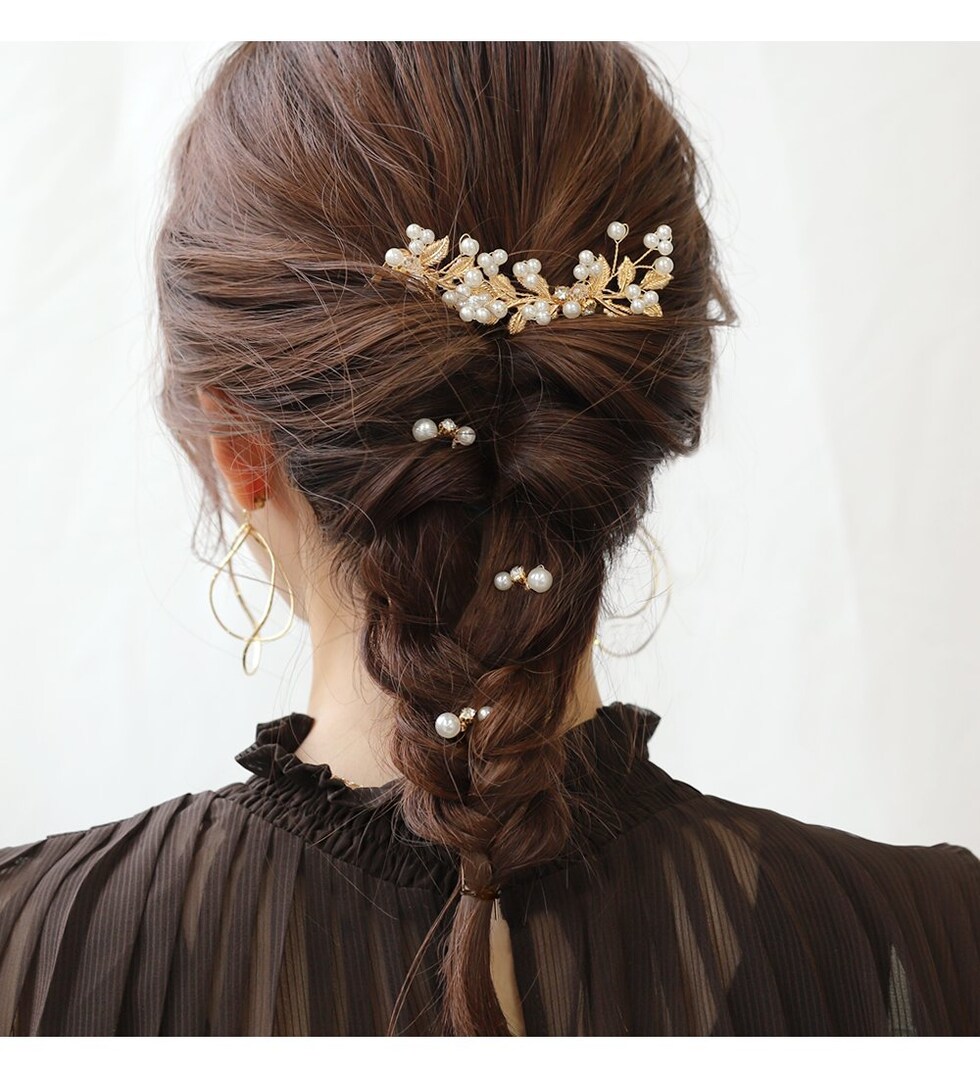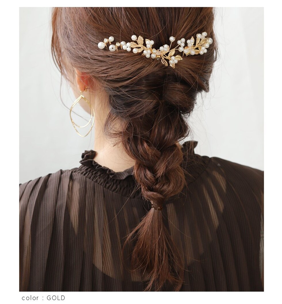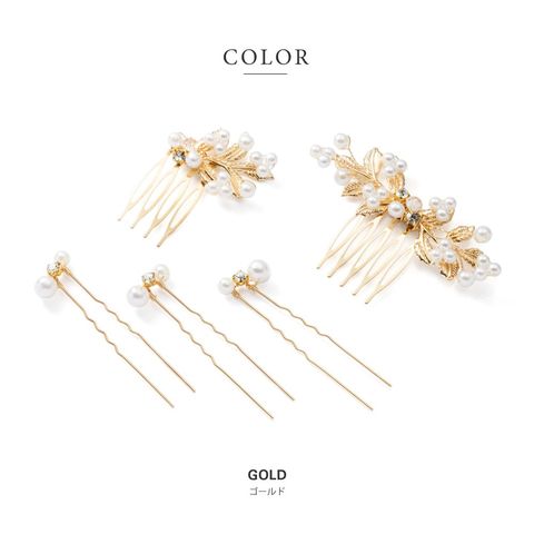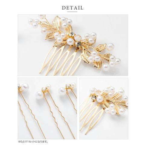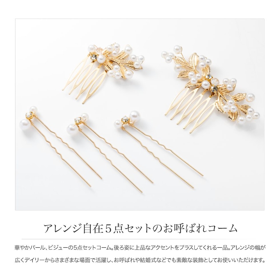 華やかパール、ビジューの5点セットコーム。後ろ姿に上品なアクセントをプラスしてくれる一品。アレンジの幅が広くデイリーからさまざまな場面で活躍し、お呼ばれや結婚式などでも素敵な装飾としてお使いいただけます。