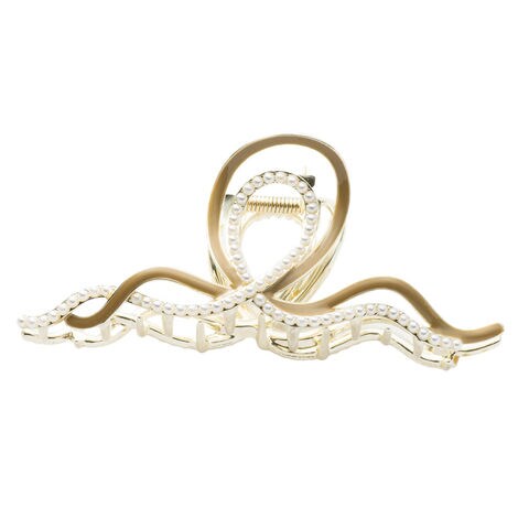 エポキシ×パールのループバンスクリップ。遊び心のあるラインと、パールの装飾が大人らしいフェミニンさと華やかさを演出。さっとまとめたヘアもこなれた雰囲気にアップデートしてくれます。大きめサイズでホールド力も抜群◎