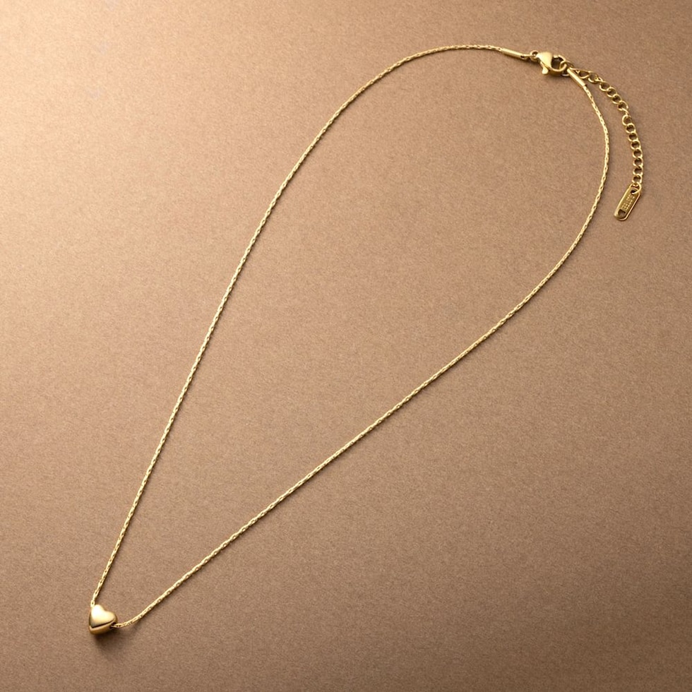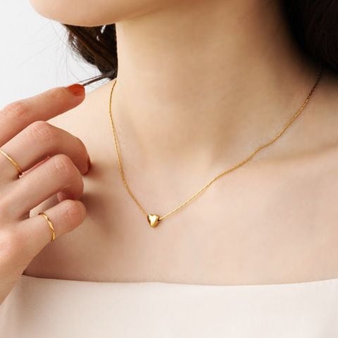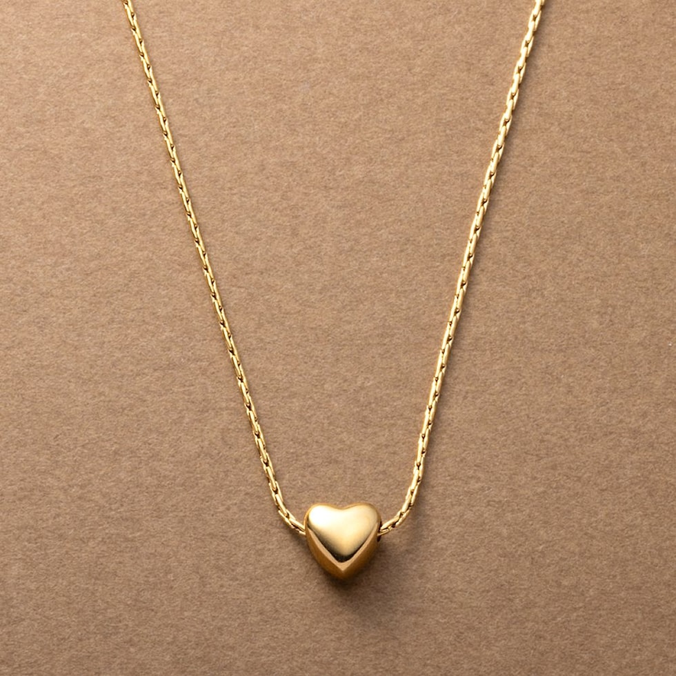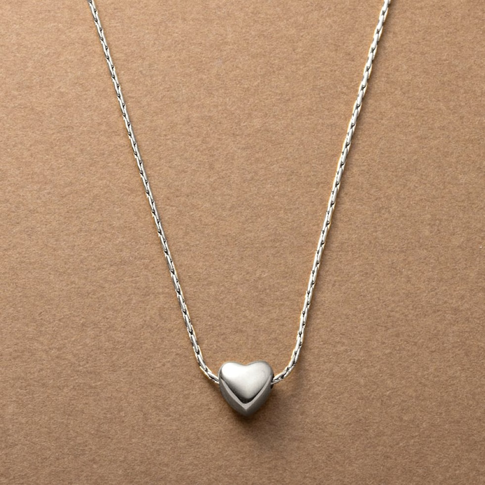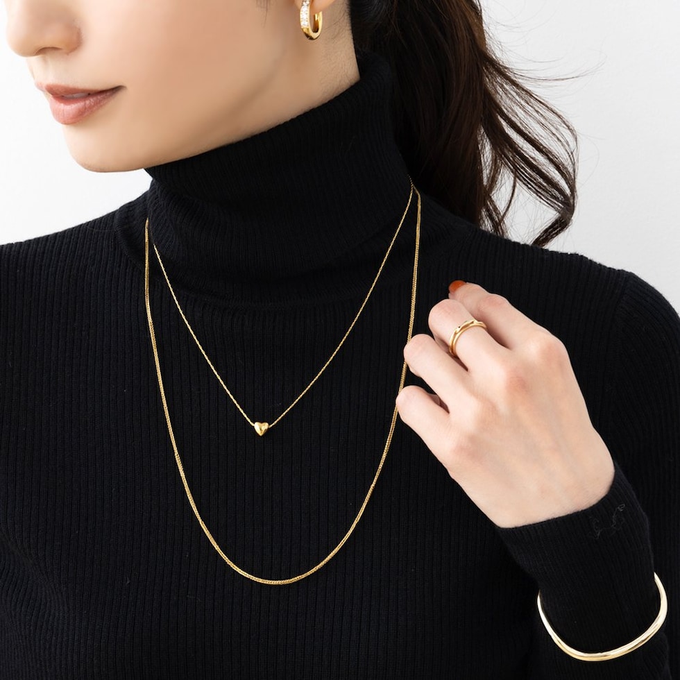 ころんとした丸みハートのステンレス製華奢ネックレス。控えめながらも繊細な輝きを魅せる極細チェーンがデコルテを大人っぽく演出。錆びにくいステンレス製だから末永く使えそう◎
