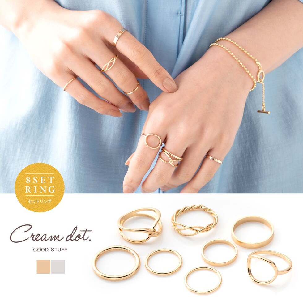 リング 指輪 金属アレルギー ニッケルフリー レディース 8点セット 重ねづけ ピンキーリング cream dot ゆうパケット [シルバー_アソート]