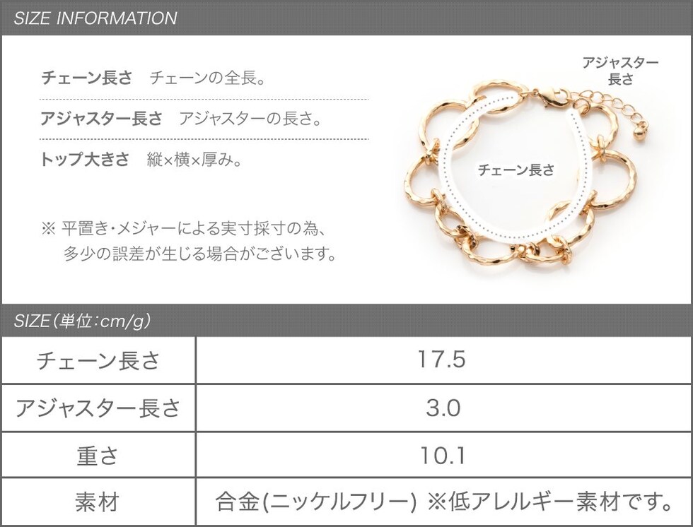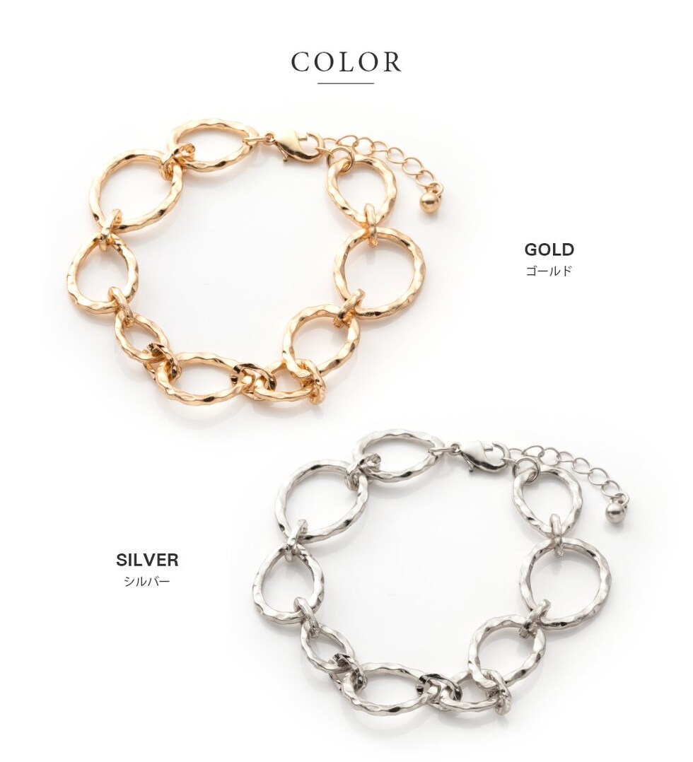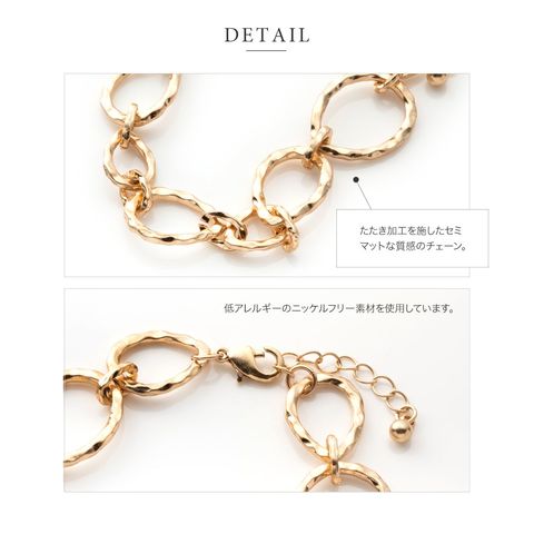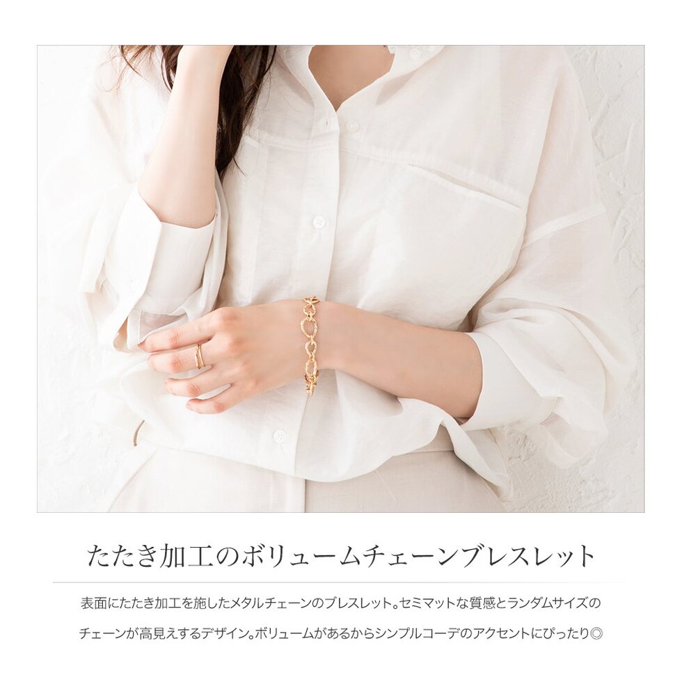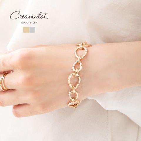 ブレスレット 金属アレルギー ニッケルフリー レディース チェーン 大ぶり ボリューム たたき加工 セミマット cream dot ゆうパケット [ゴールド_ワンサイズ]