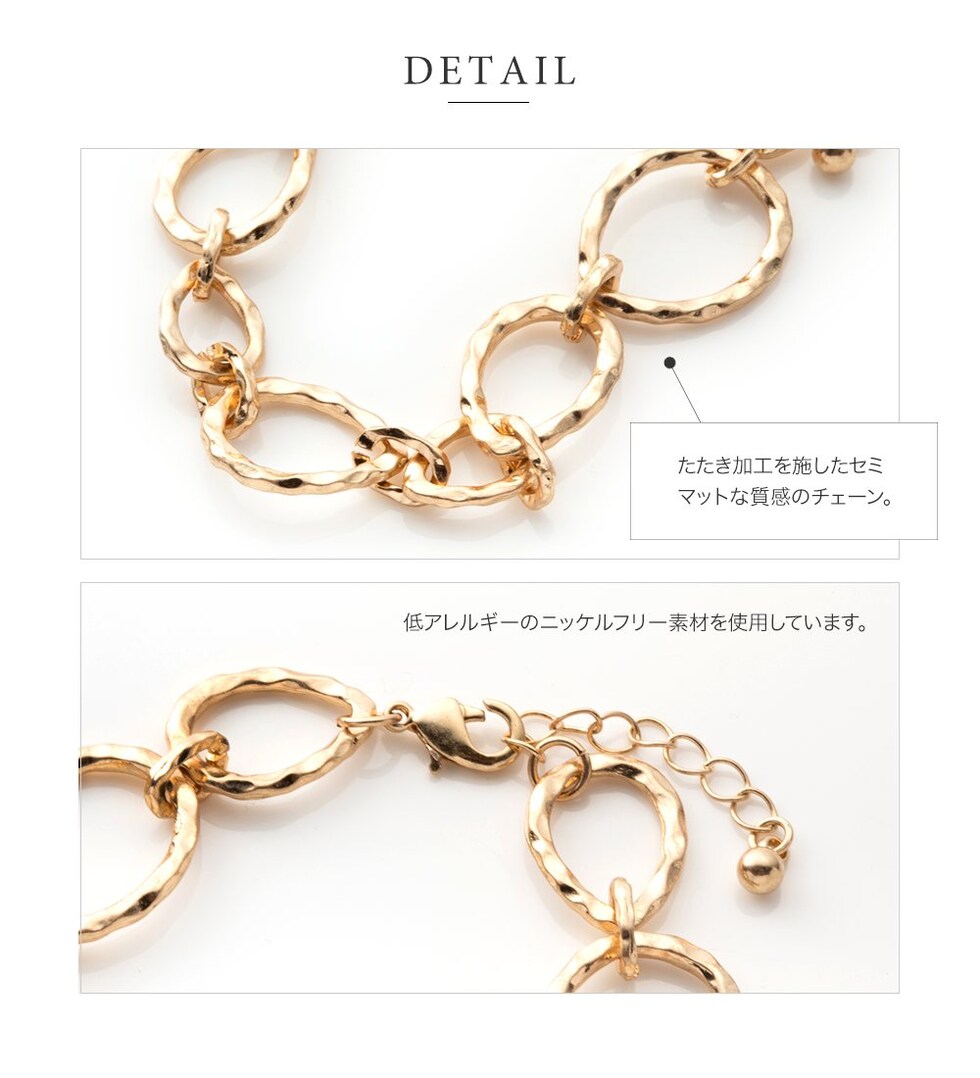 セミマットな質感とランダムサイズのチェーンが高見えするデザイン。