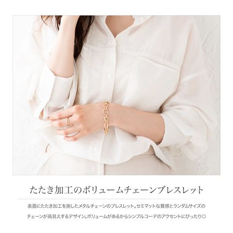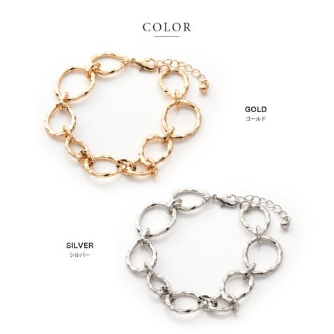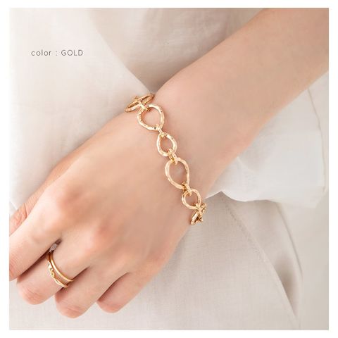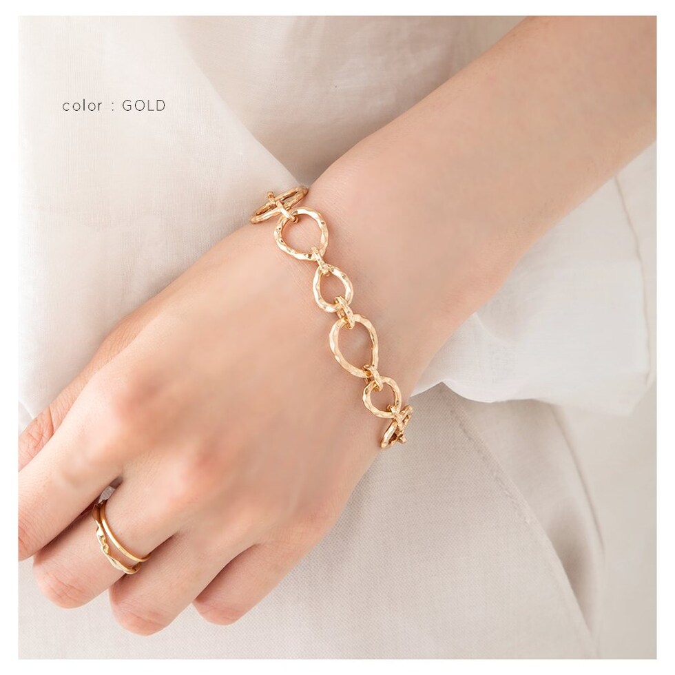 表面にたたき加工を施したメタルチェーンのブレスレット。