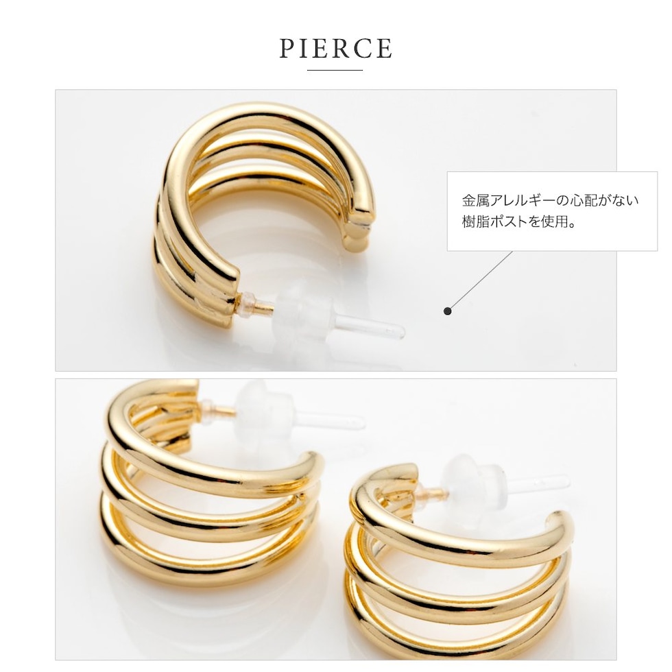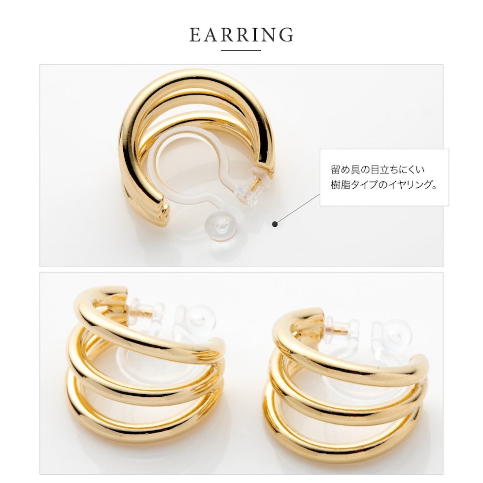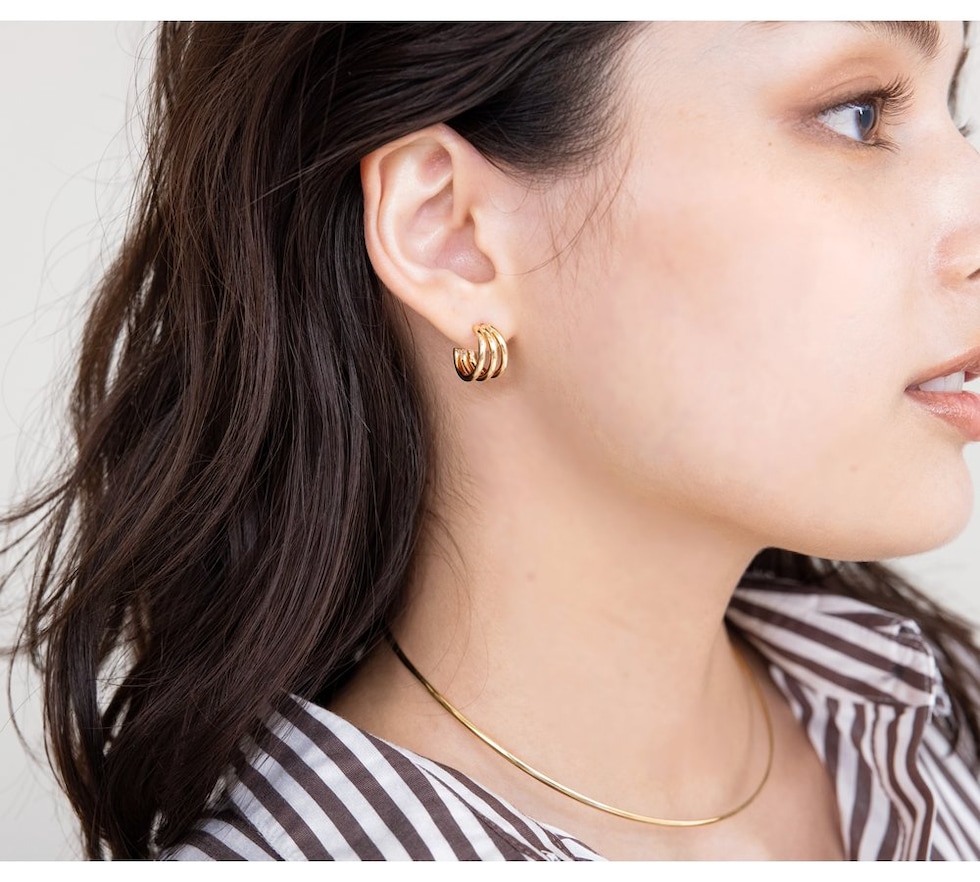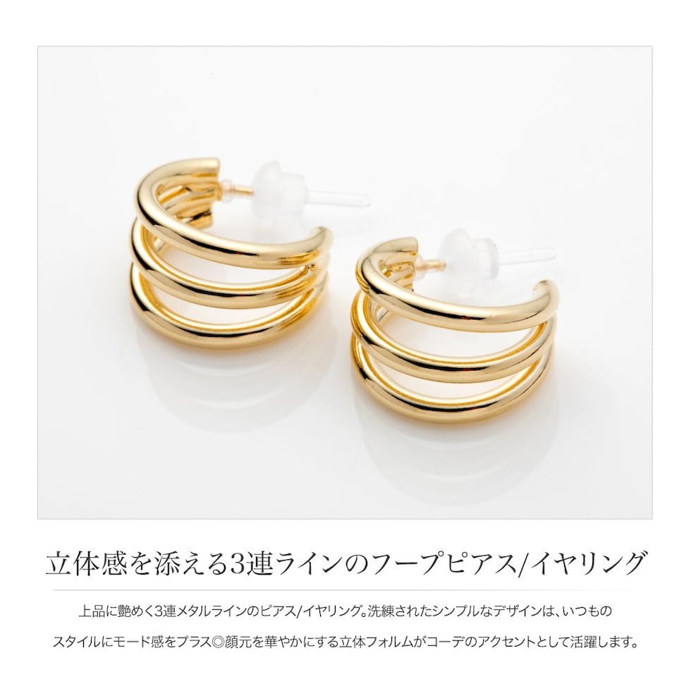 上品に艶めく3連メタルラインのピアス/イヤリング。