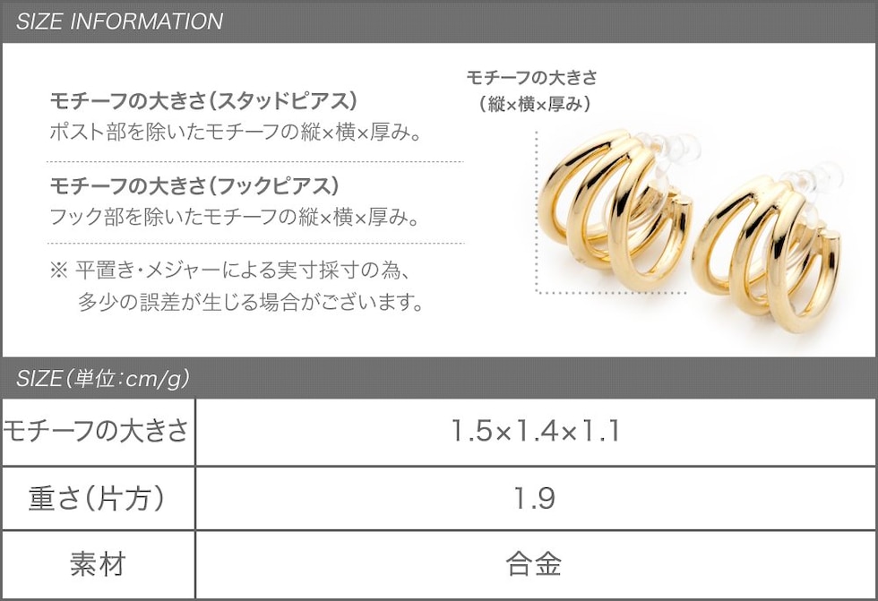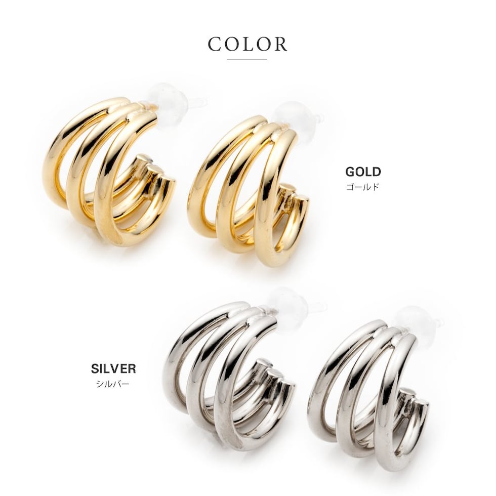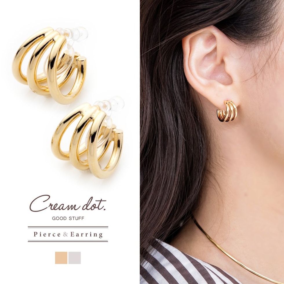 ピアス イヤリング レディース ポスト フープ 3連 三連 メタル cream dot ゆうパケット [シルバー_イヤリング]