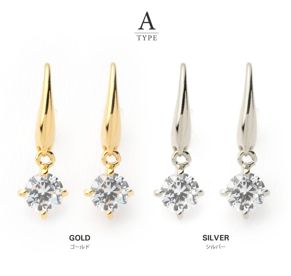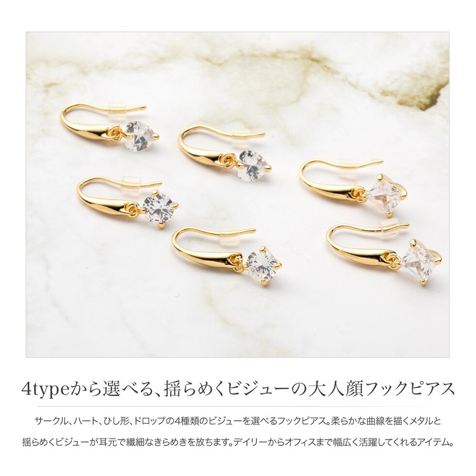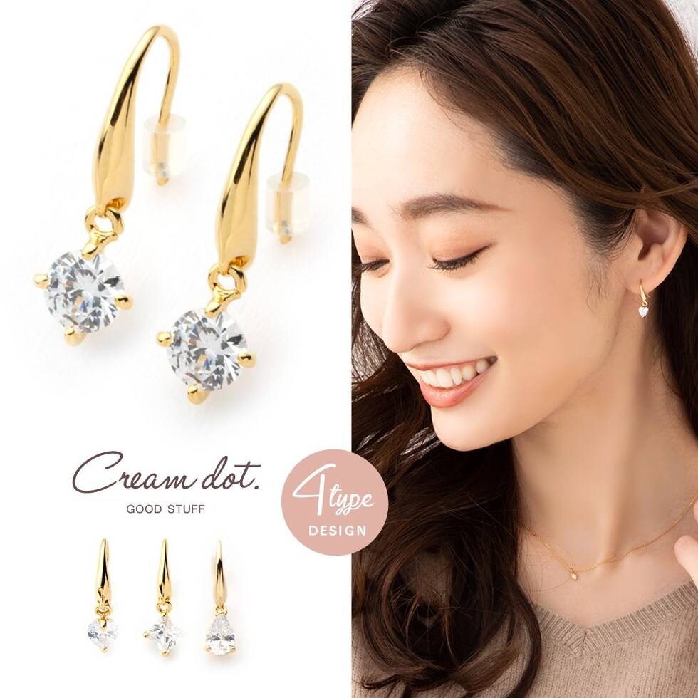ピアス レディース 4タイプ フック ちょい揺れ キュービックジルコニア 一粒ビジュー サークル ハート ひし形 ドロップ cream dot ゆうパケット [C:シルバー_ピアス]
