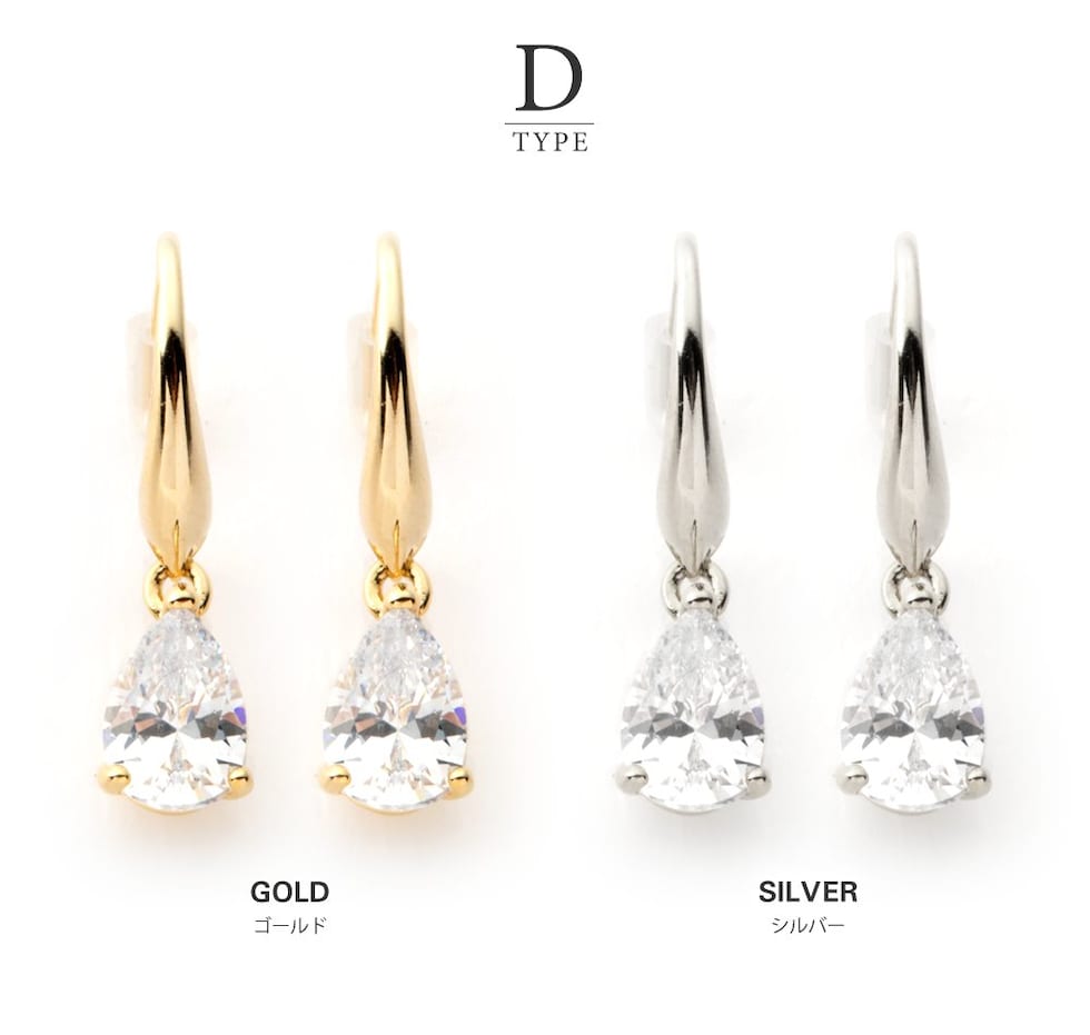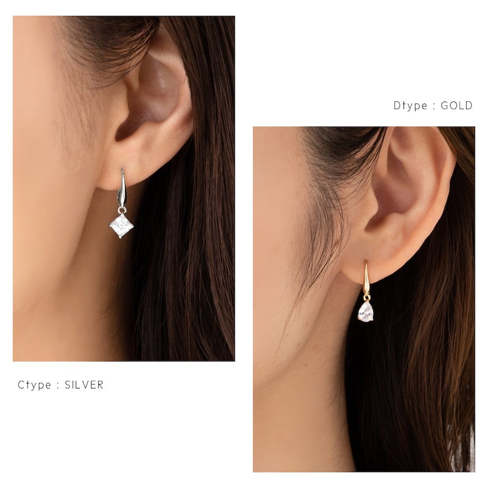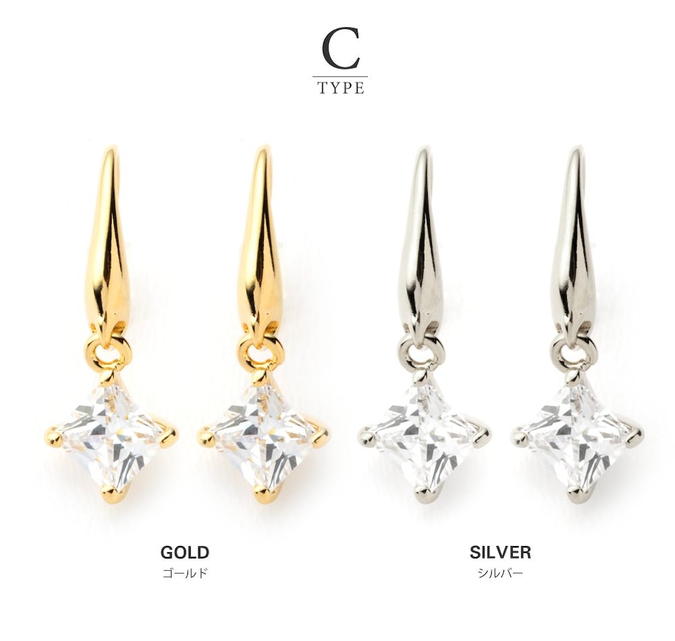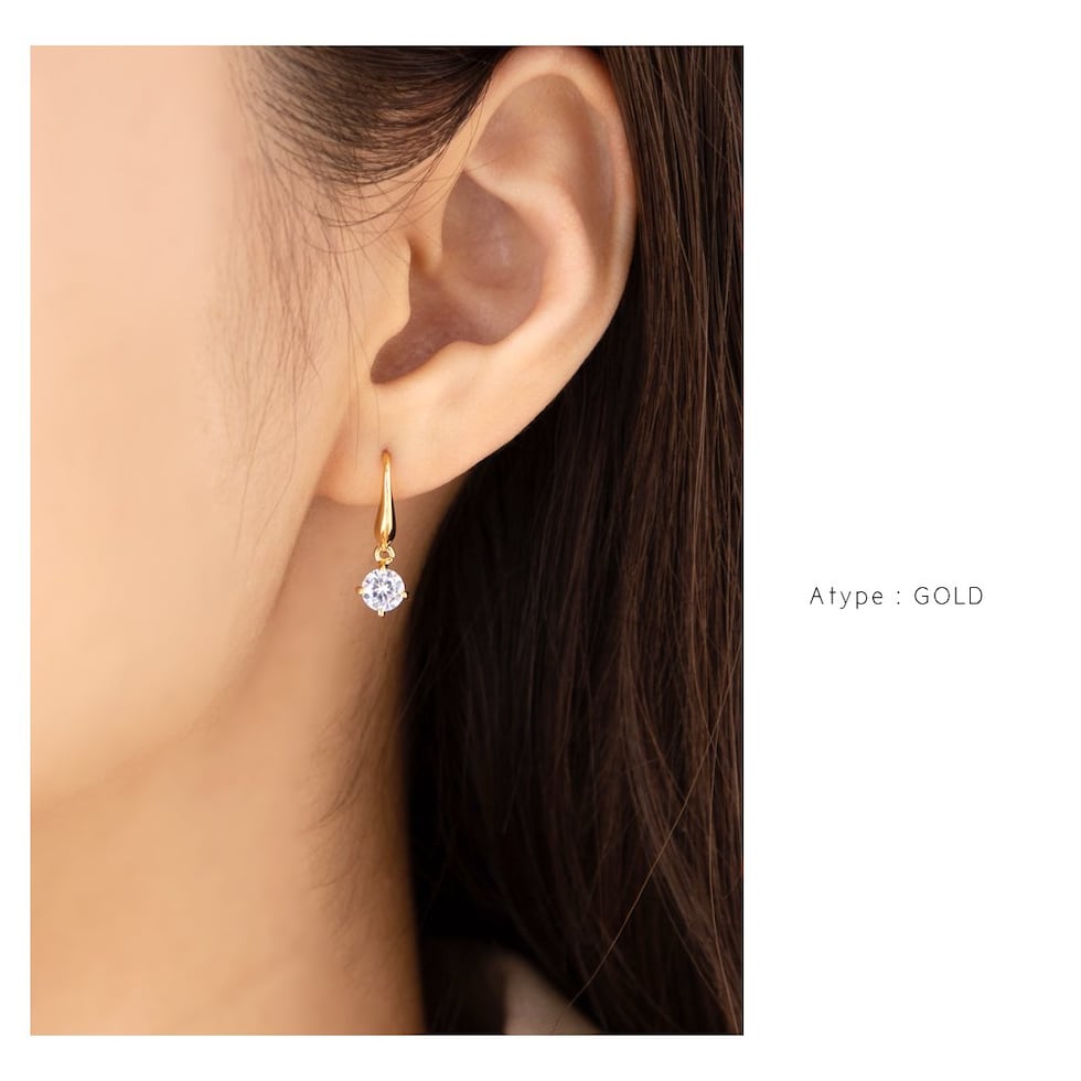 ピアス レディース 4タイプ フック ちょい揺れ キュービックジルコニア 一粒ビジュー サークル ハート ひし形 ドロップ cream dot ゆうパケット [C:シルバー_ピアス]