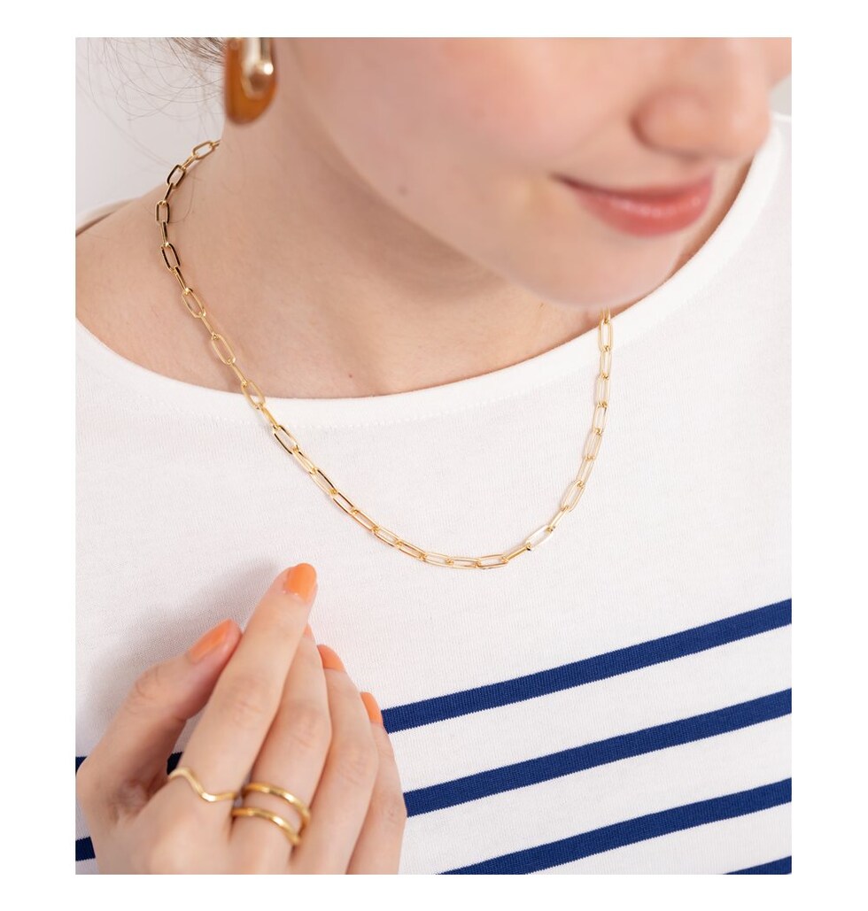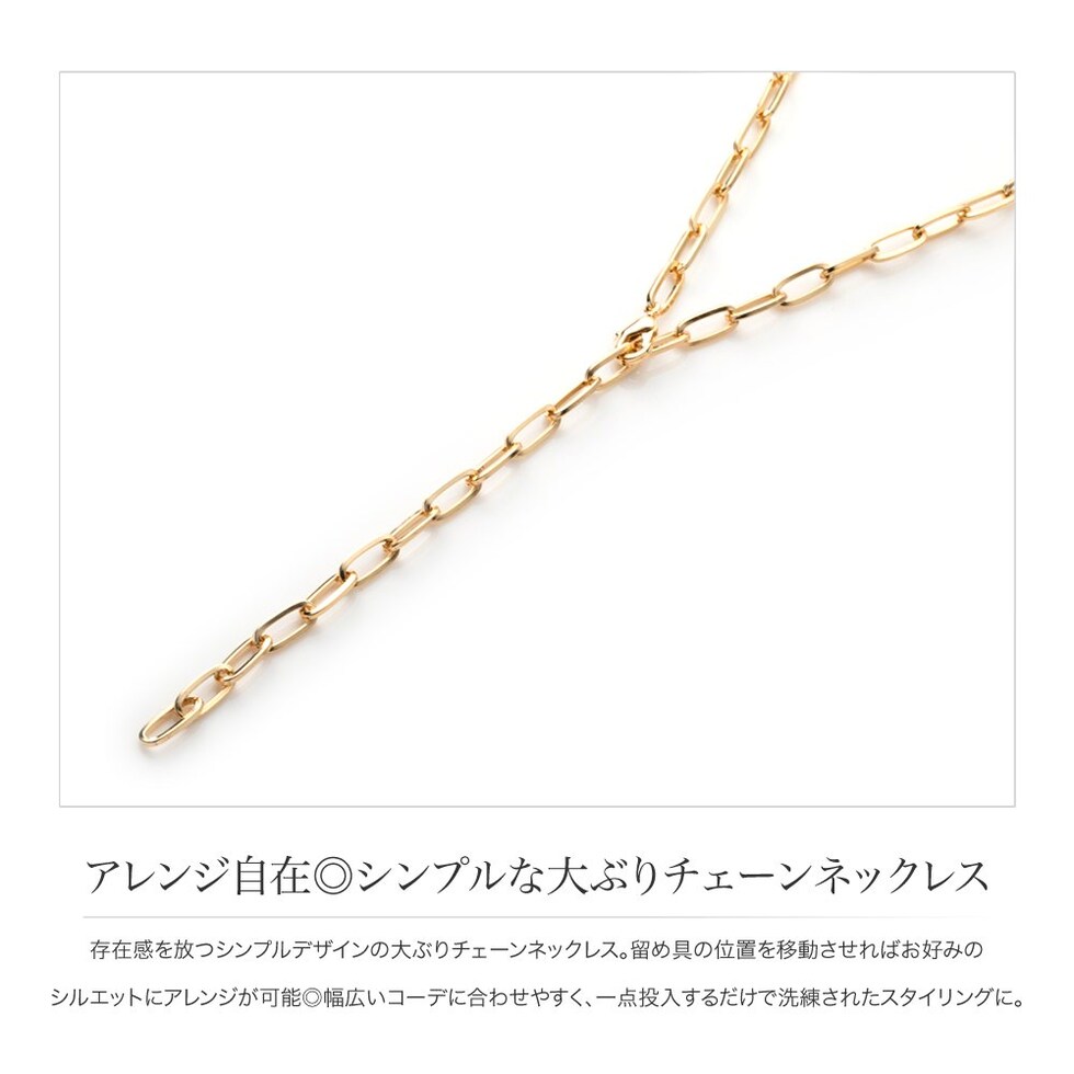 存在感を放つシンプルデザインの大ぶりチェーンネックレス。