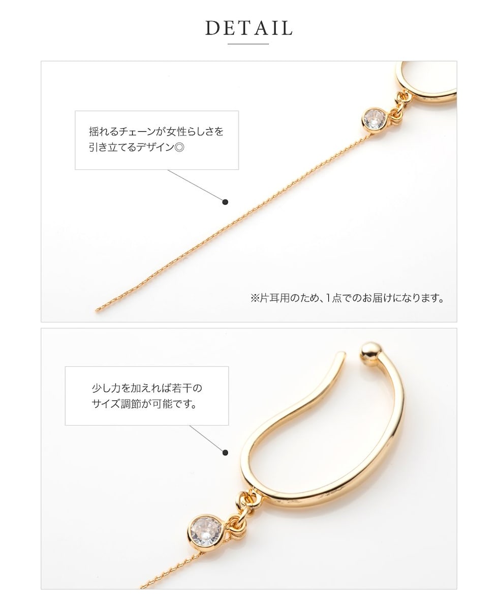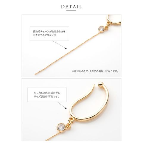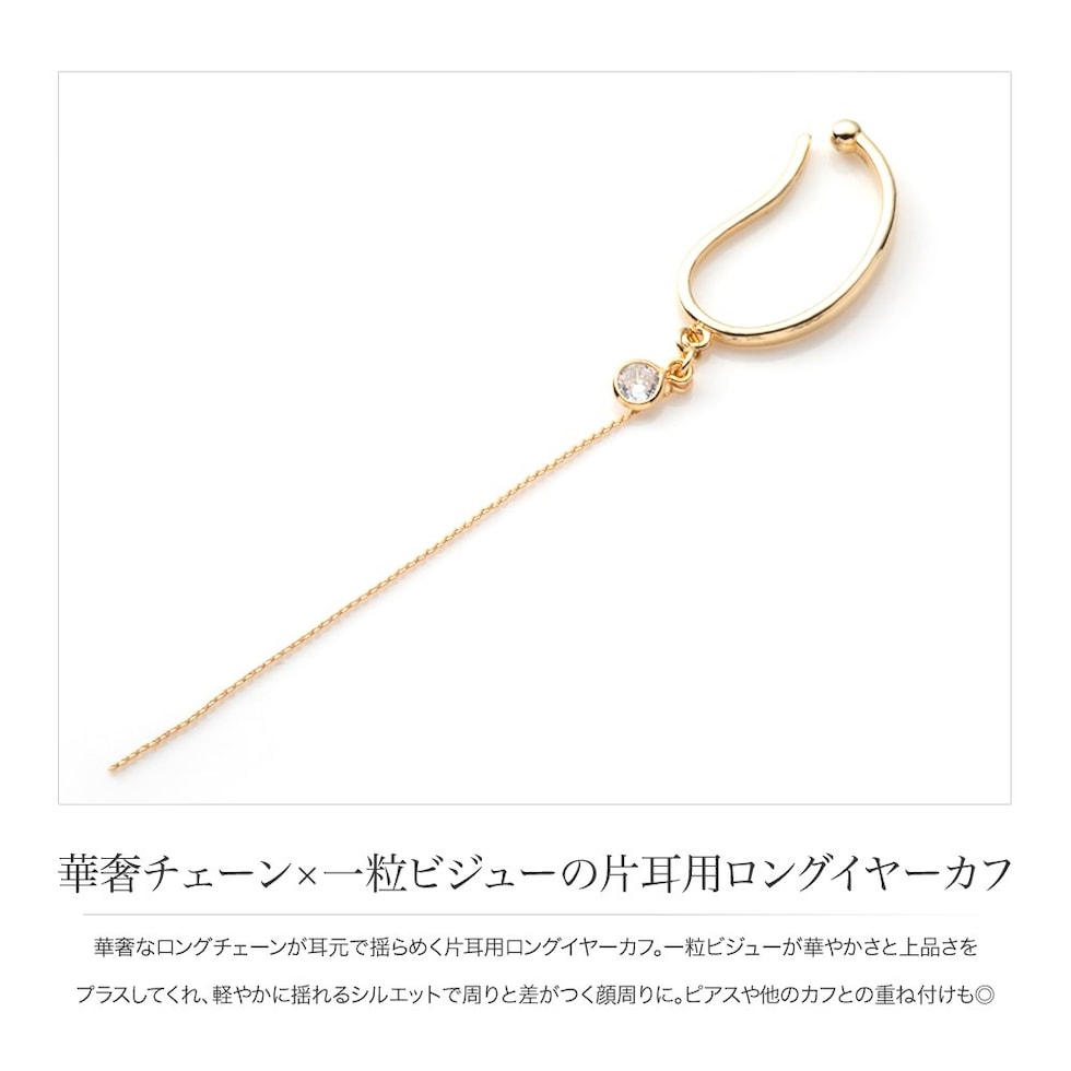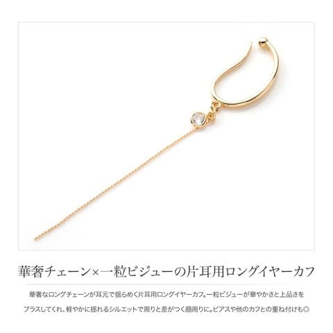 華奢なロングチェーンが耳元で揺らめく片耳用ロングイヤーカフ。