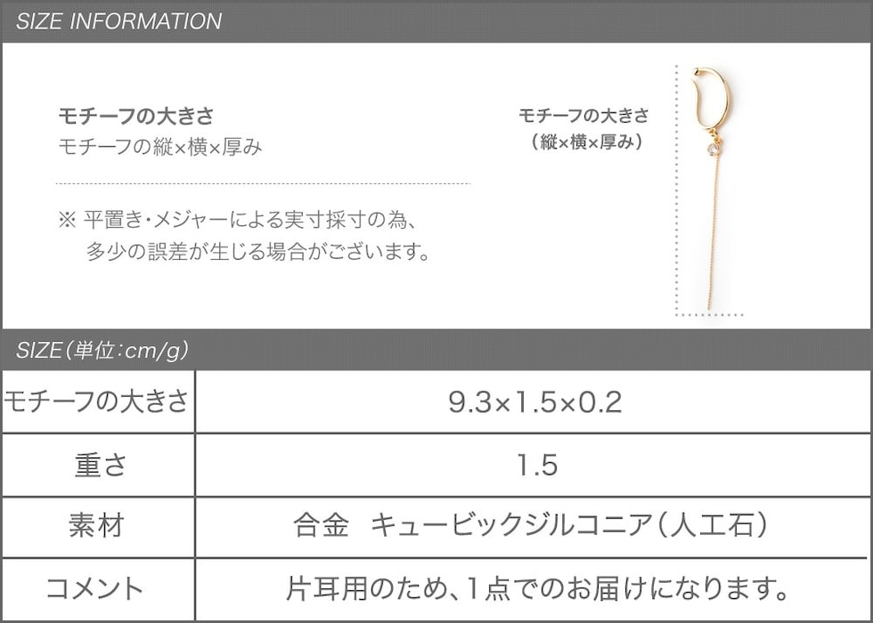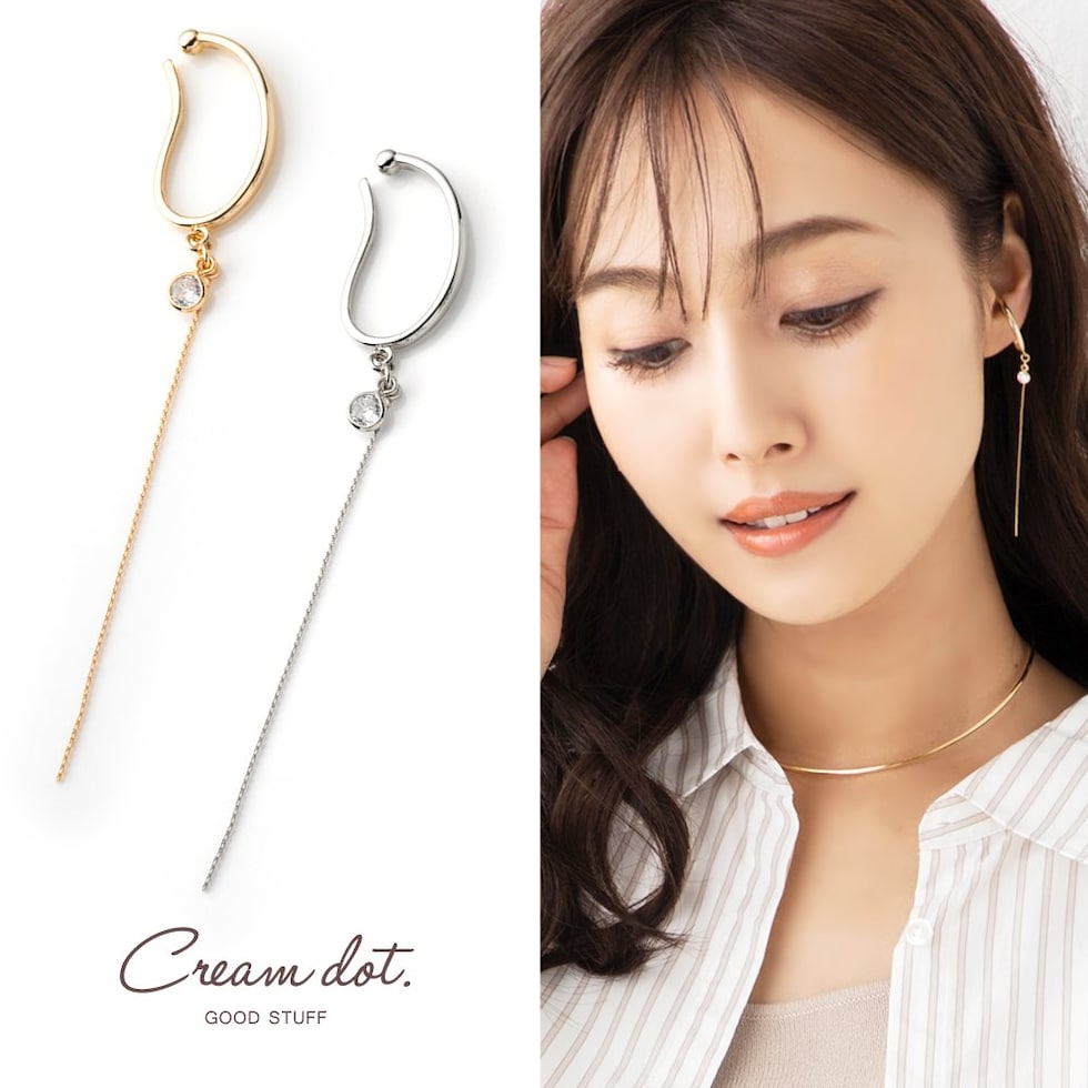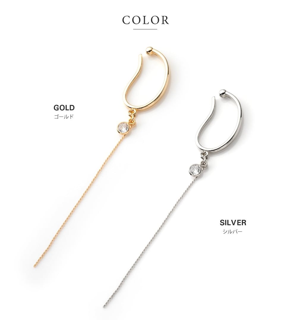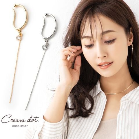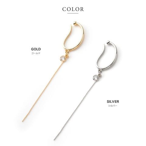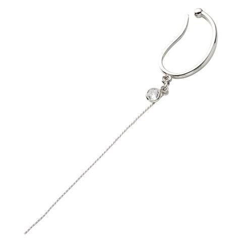 イヤーカフ レディース イヤカフ 片耳用 ロング チェーン メタル 大ぶり キュービックジルコニア cream dot ゆうパケット [シルバー_フリーサイズ]