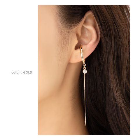一粒ビジューが華やかさと上品さをプラスしてくれ、軽やかに揺れるシルエットで周りと差がつく顔周りに。
