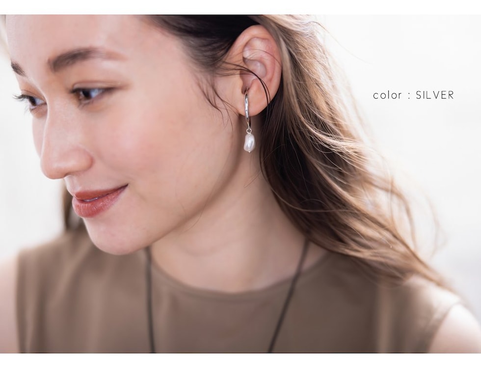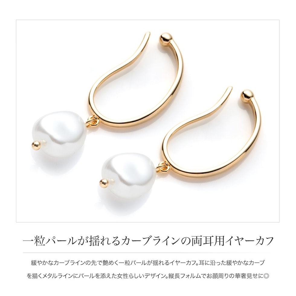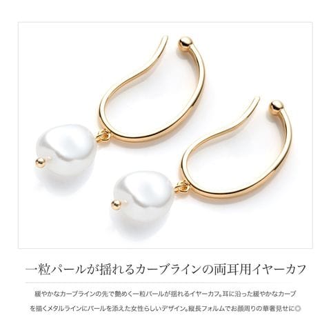緩やかなカーブラインの先で艶めく一粒パールが揺れるイヤーカフ。