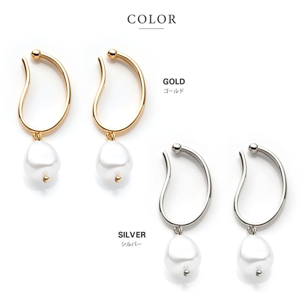 耳に沿った緩やかなカーブを描くメタルラインにパールを添えた女性らしいデザイン。