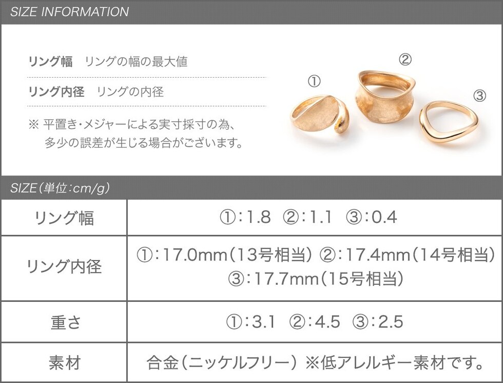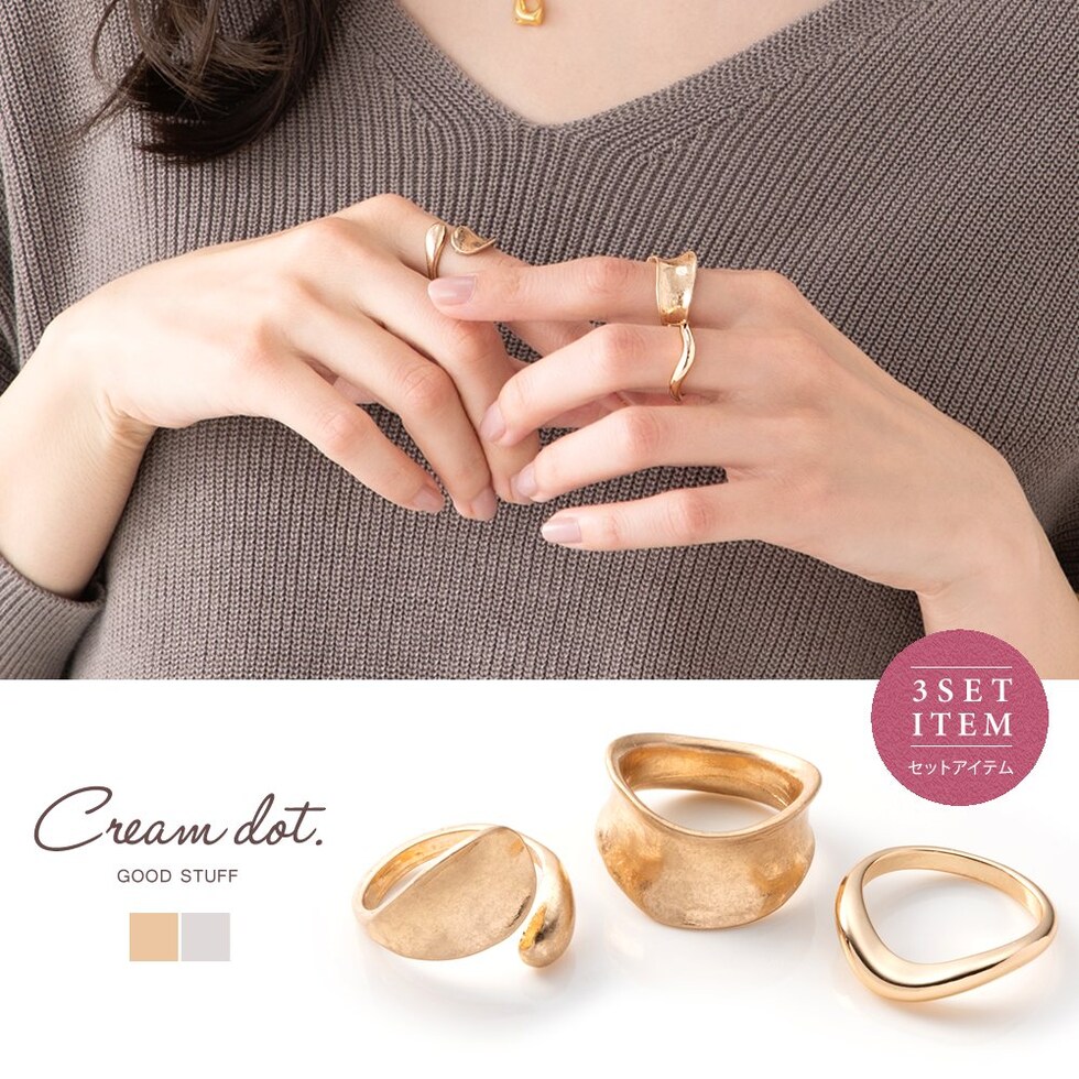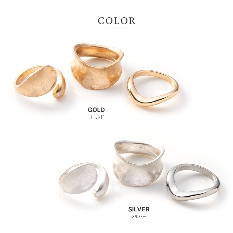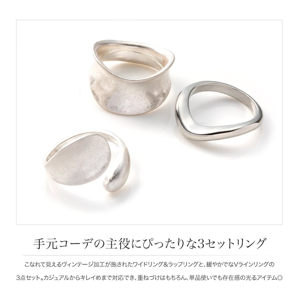 リング 指輪 金属アレルギー ニッケルフリー レディース 3点セット セットリング 重ねづけ ワイド ラップリング v字 ヴィンテージ調 艶消し マット cream dot ゆうパケット [シルバー_アソート]