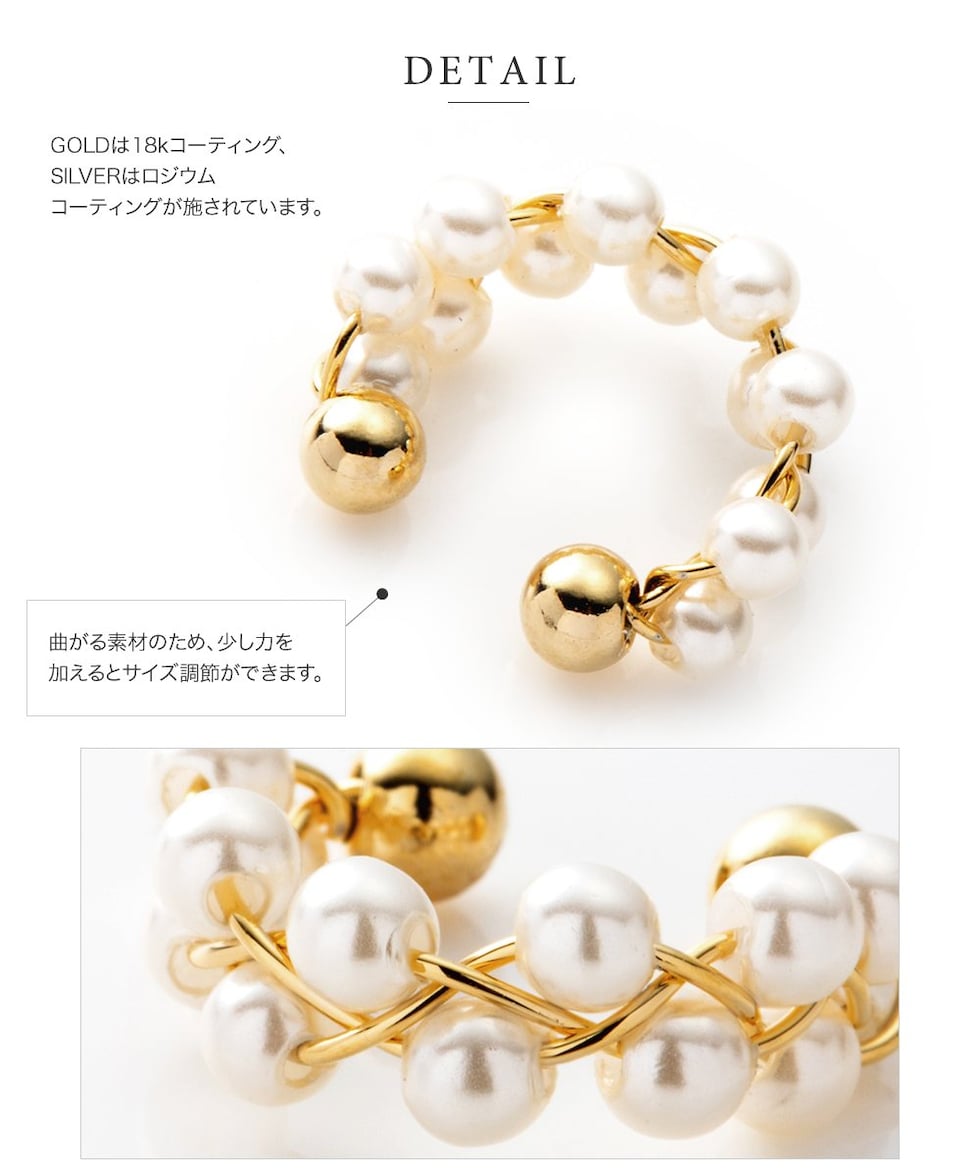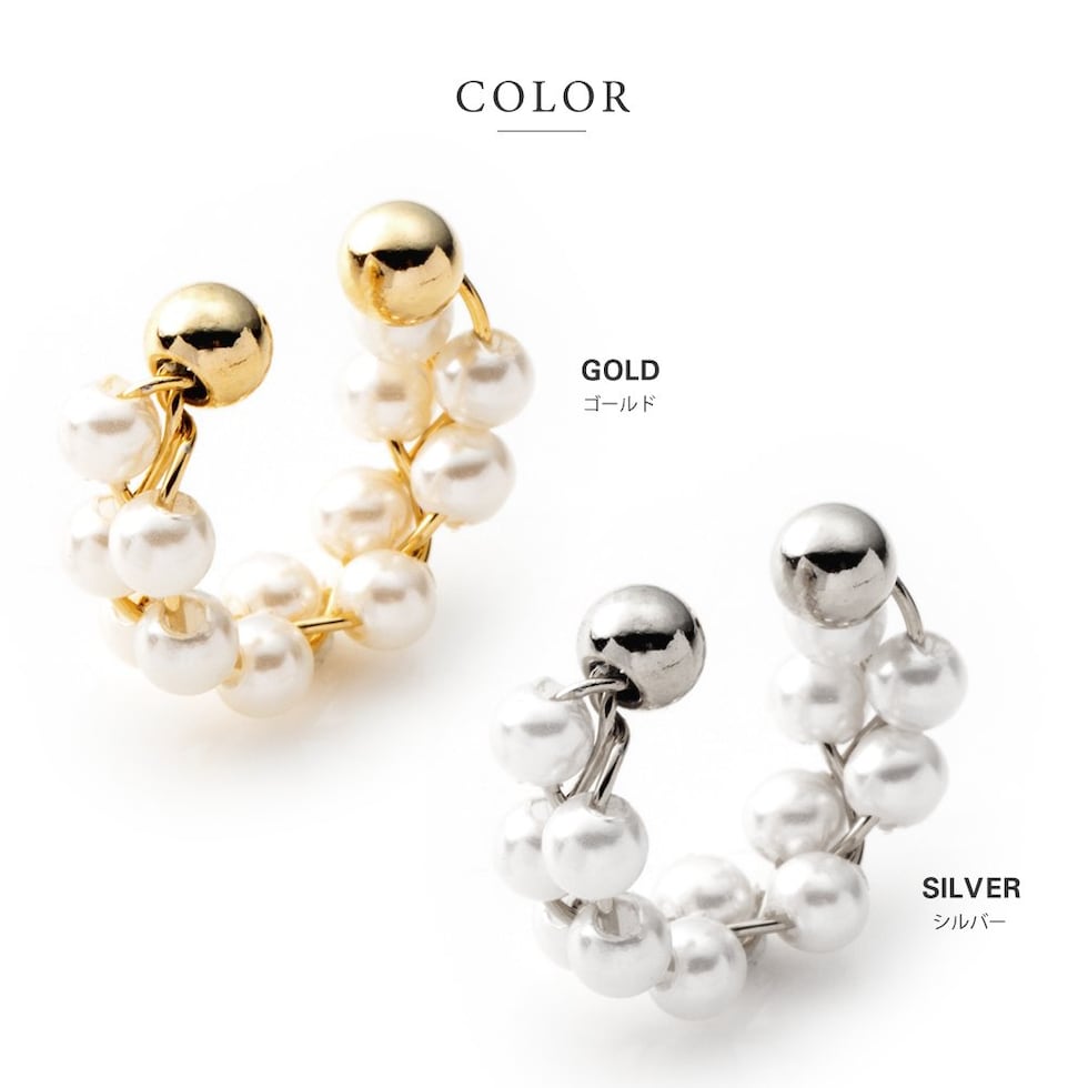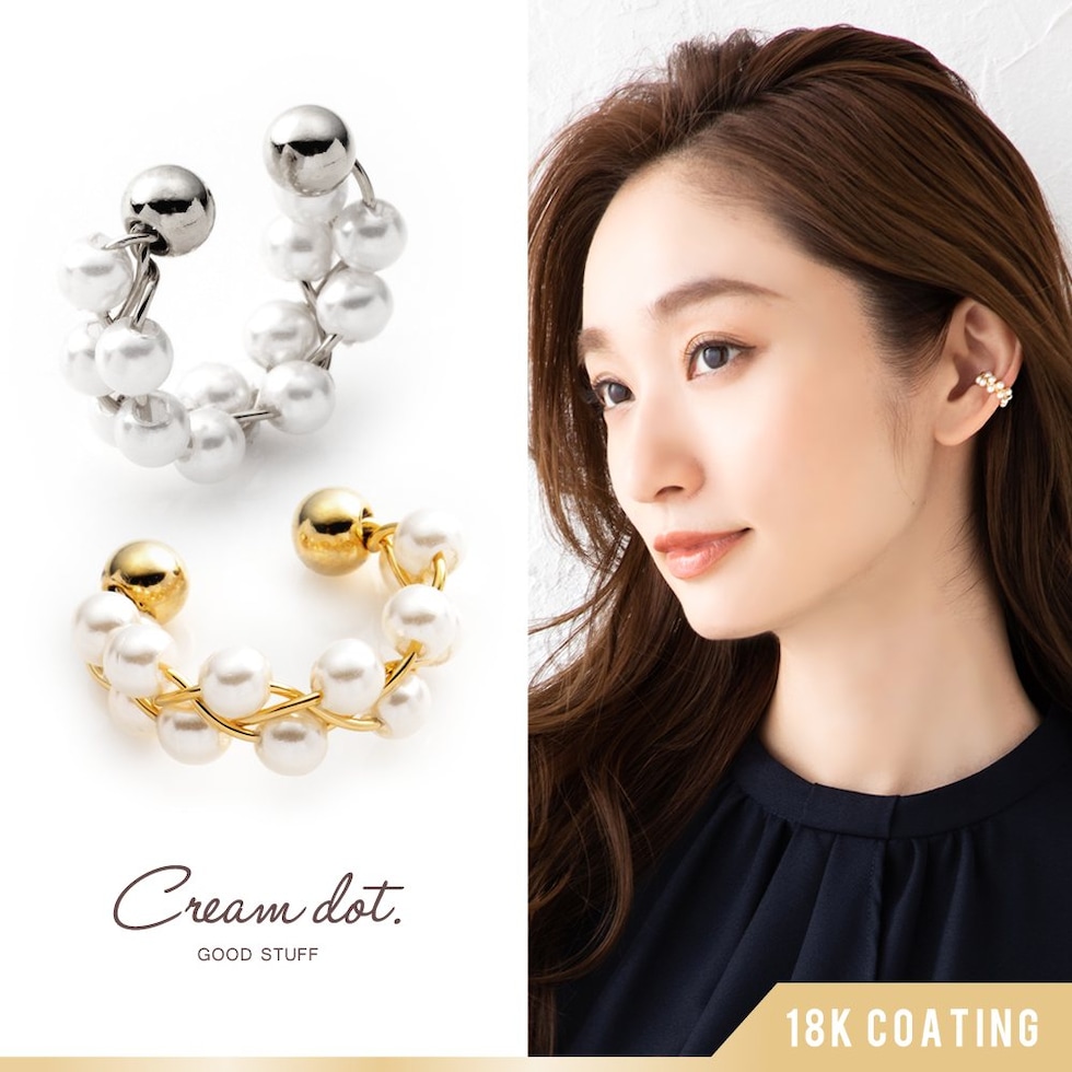 イヤーカフ レディース イヤカフ 片耳用 メタル パール 編み込みパール cream dot ゆうパケット [シルバー_フリーサイズ]