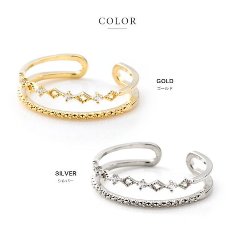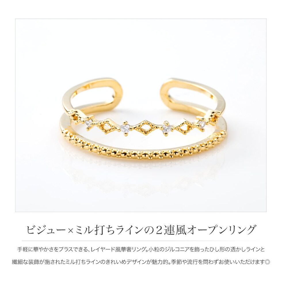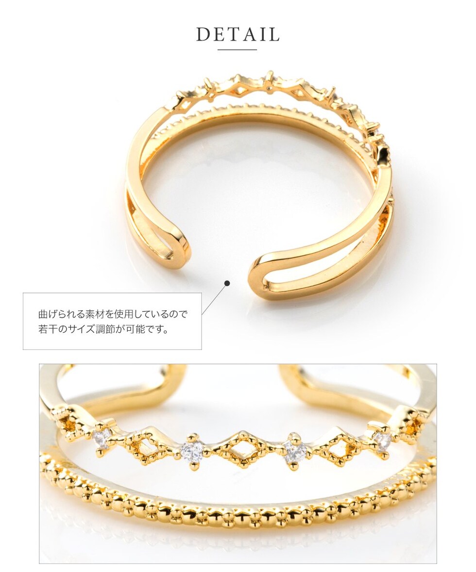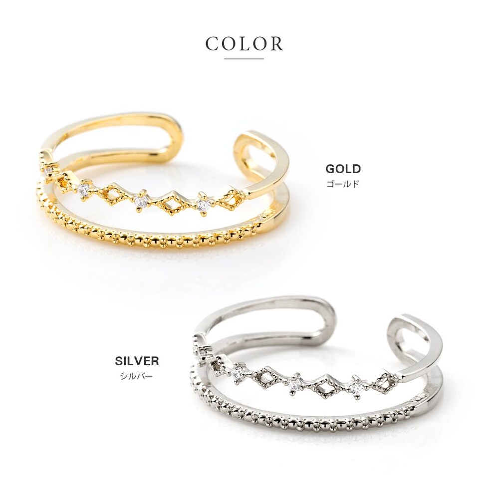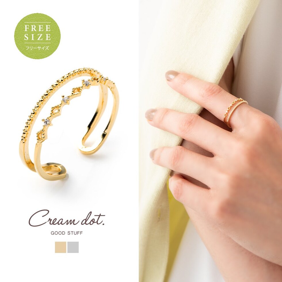 リング 指輪 レディース フリーサイズ 重ねづけ 調節可能 キュービックジルコニア ビジュー ミル打ち オープンリング cream dot ゆうパケット [シルバー_フリーサイズ]