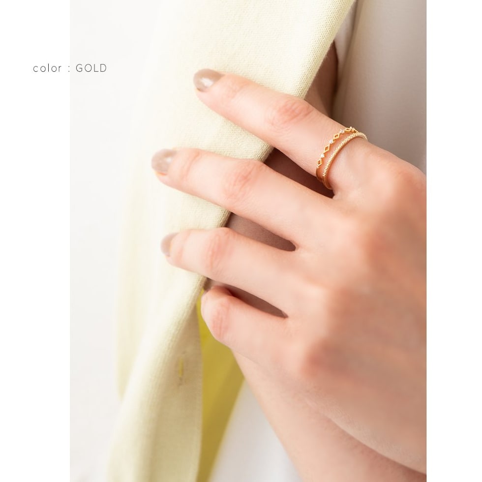 手軽に華やかさをプラスできる、レイヤード風華奢リング。