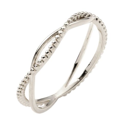 繊細なミル打ちラインとプレーンラインが煌めくクロスリング。