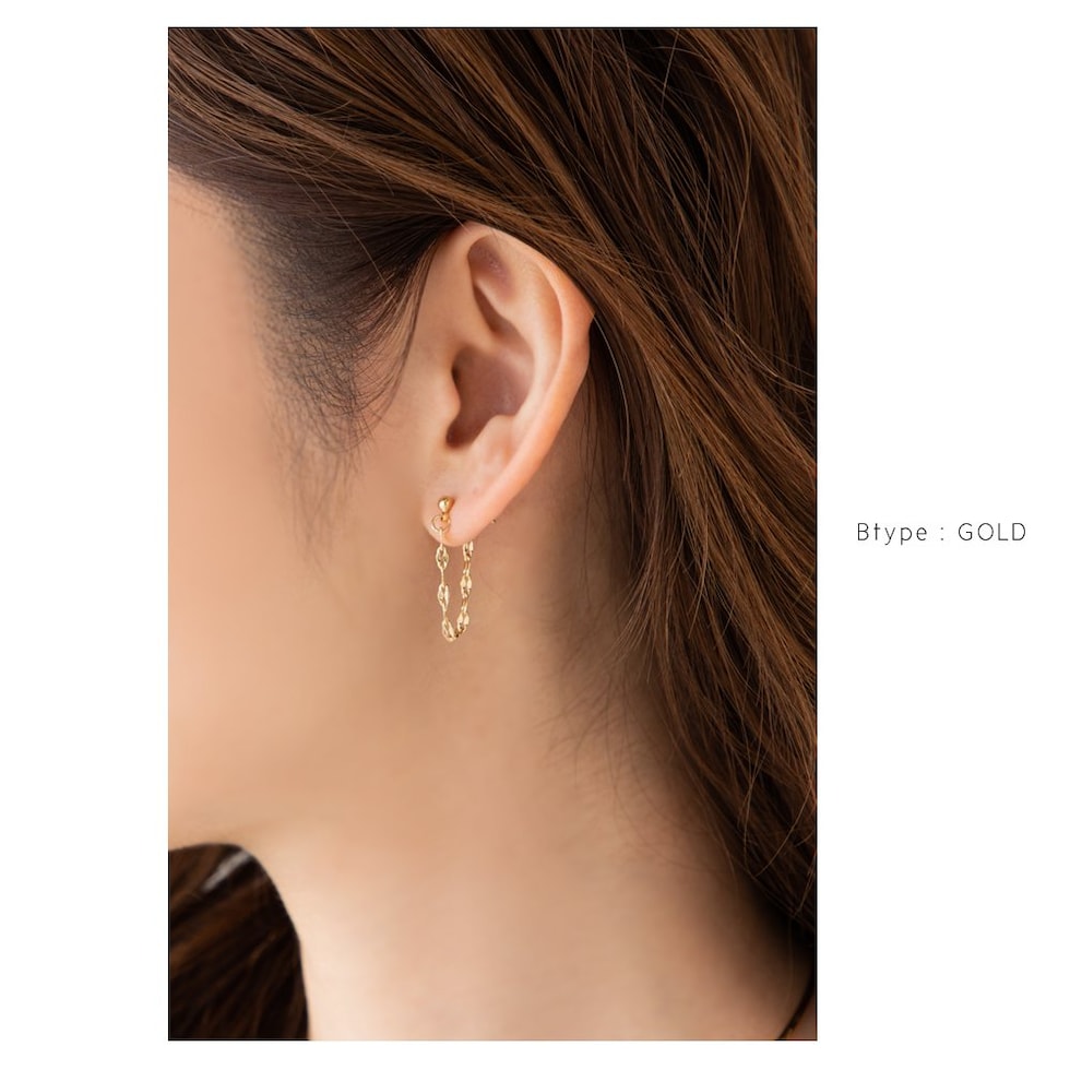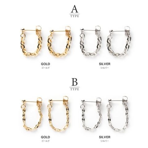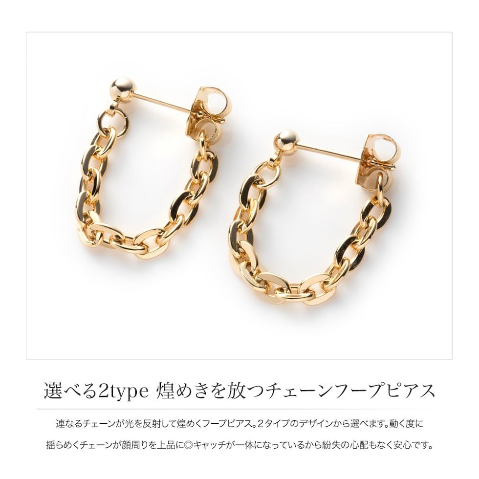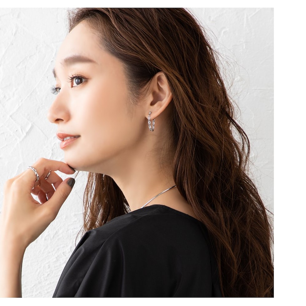 連なるチェーンが光を反射して煌めくフープピアス。2タイプのデザインから選べます。