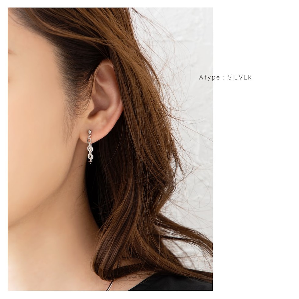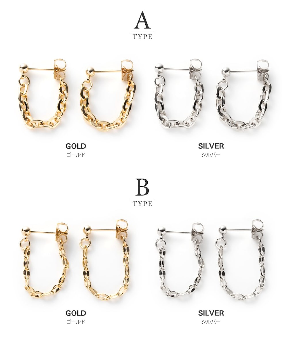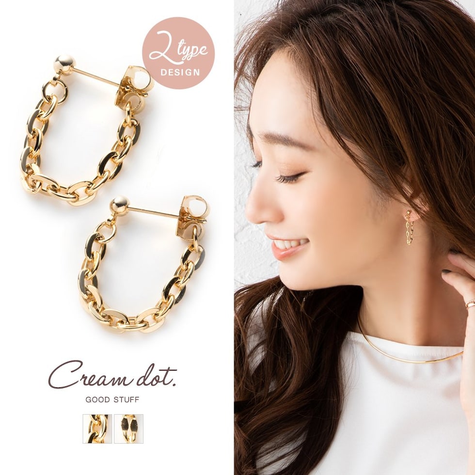 ピアス レディース 2タイプ 揺れる チェーン フープ cream dot ゆうパケット [A:シルバー_ピアス]