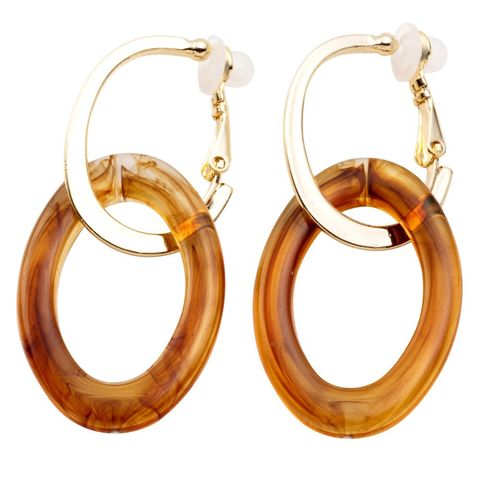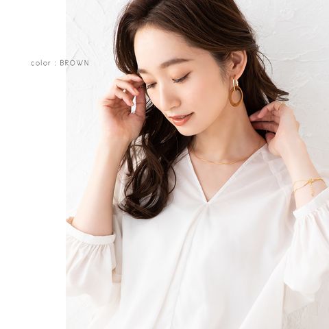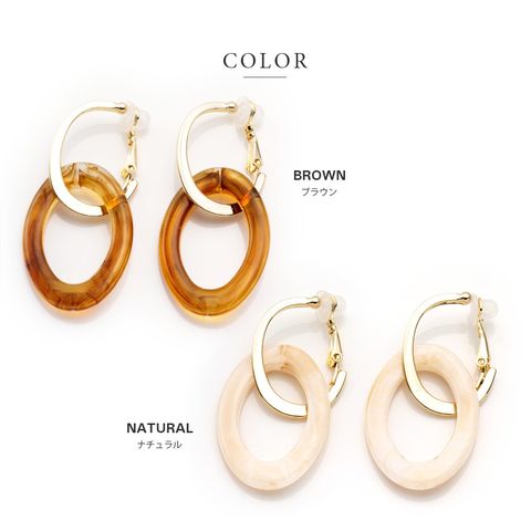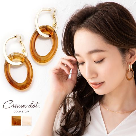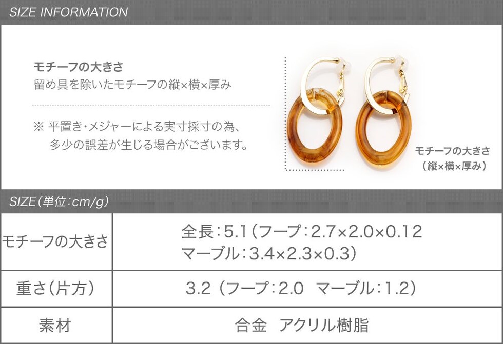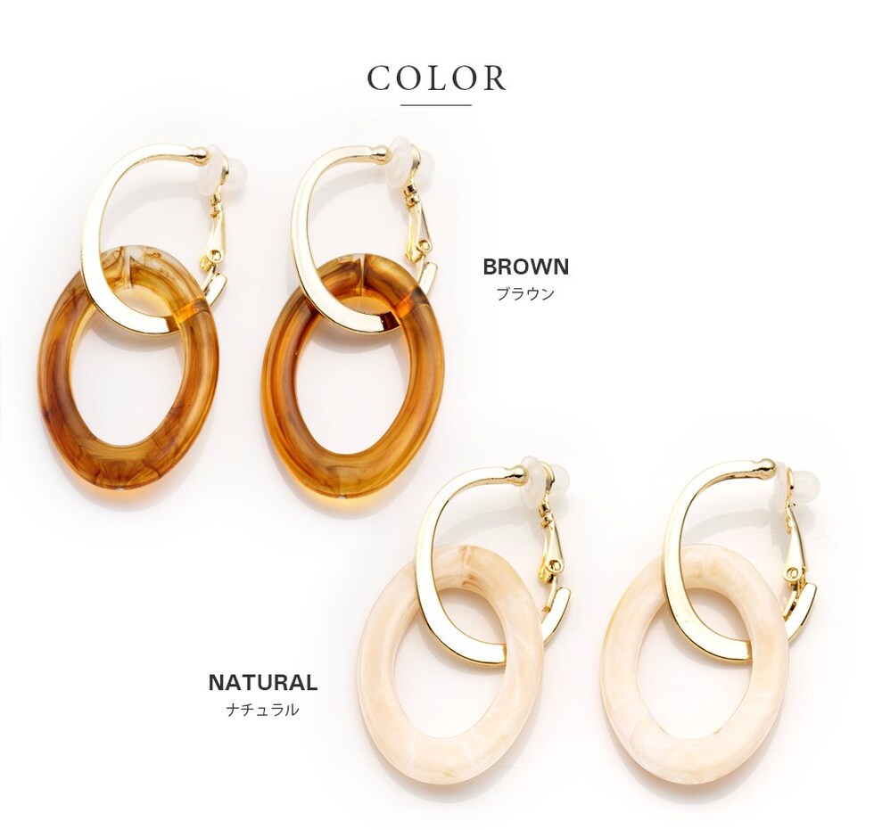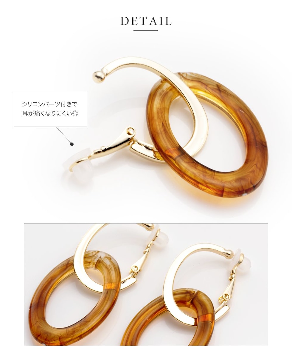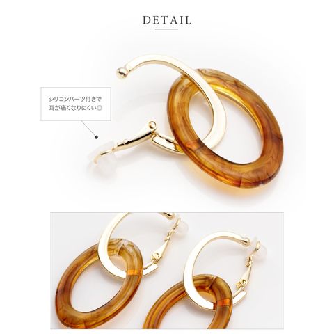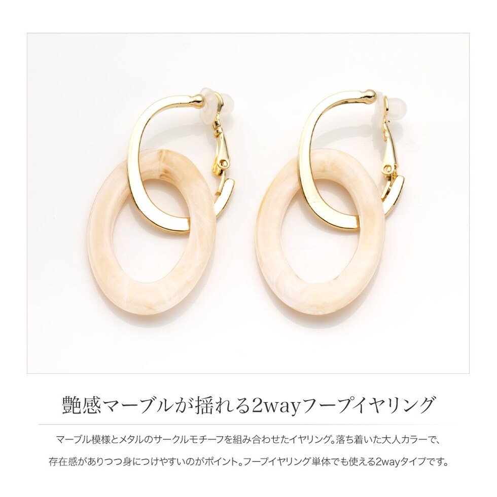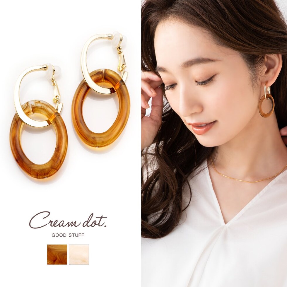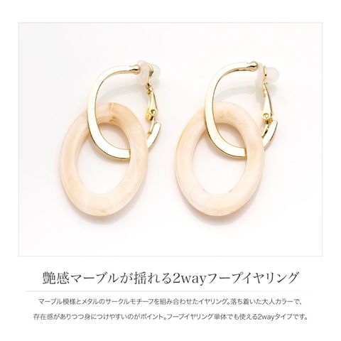 イヤリング レディース フープ 2way 取り外し可能 大ぶり マーブル 揺れる シリコンカバー クリップ式 ナチュラル cream dot ゆうパケット [ブラウン_イヤリング]