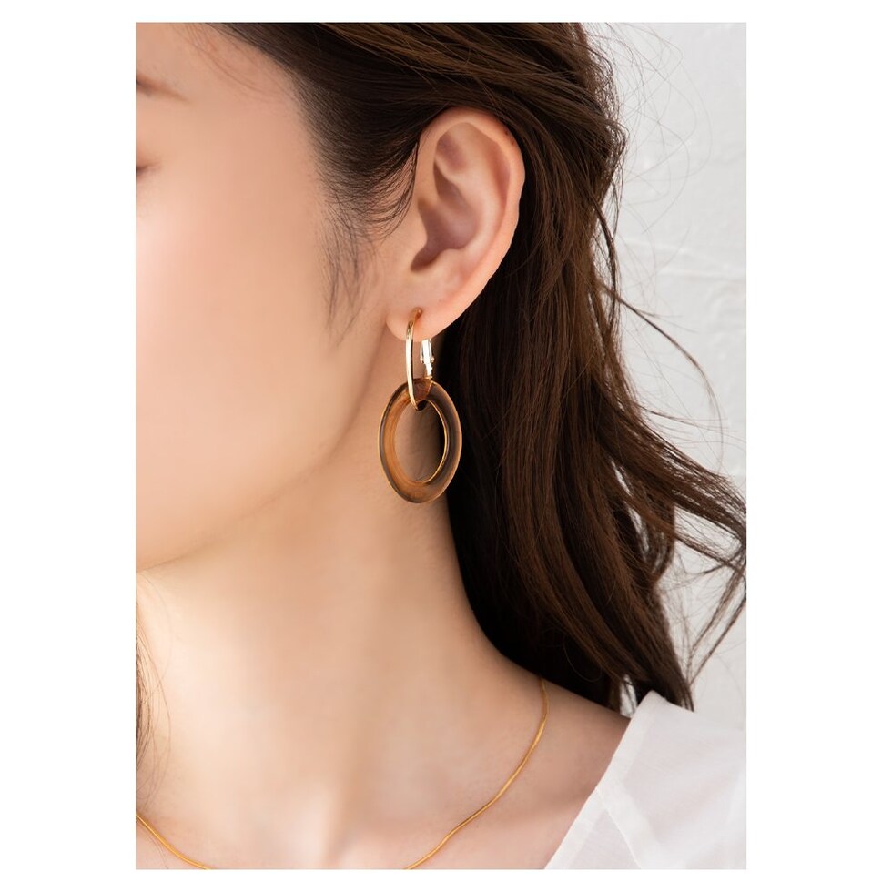 マーブル模様とメタルのサークルモチーフを組み合わせたイヤリング。