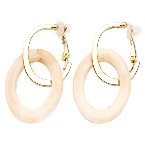 イヤリング レディース フープ 2way 取り外し可能 大ぶり マーブル 揺れる シリコンカバー クリップ式 ナチュラル cream dot ゆうパケット [ナチュラル_イヤリング]
