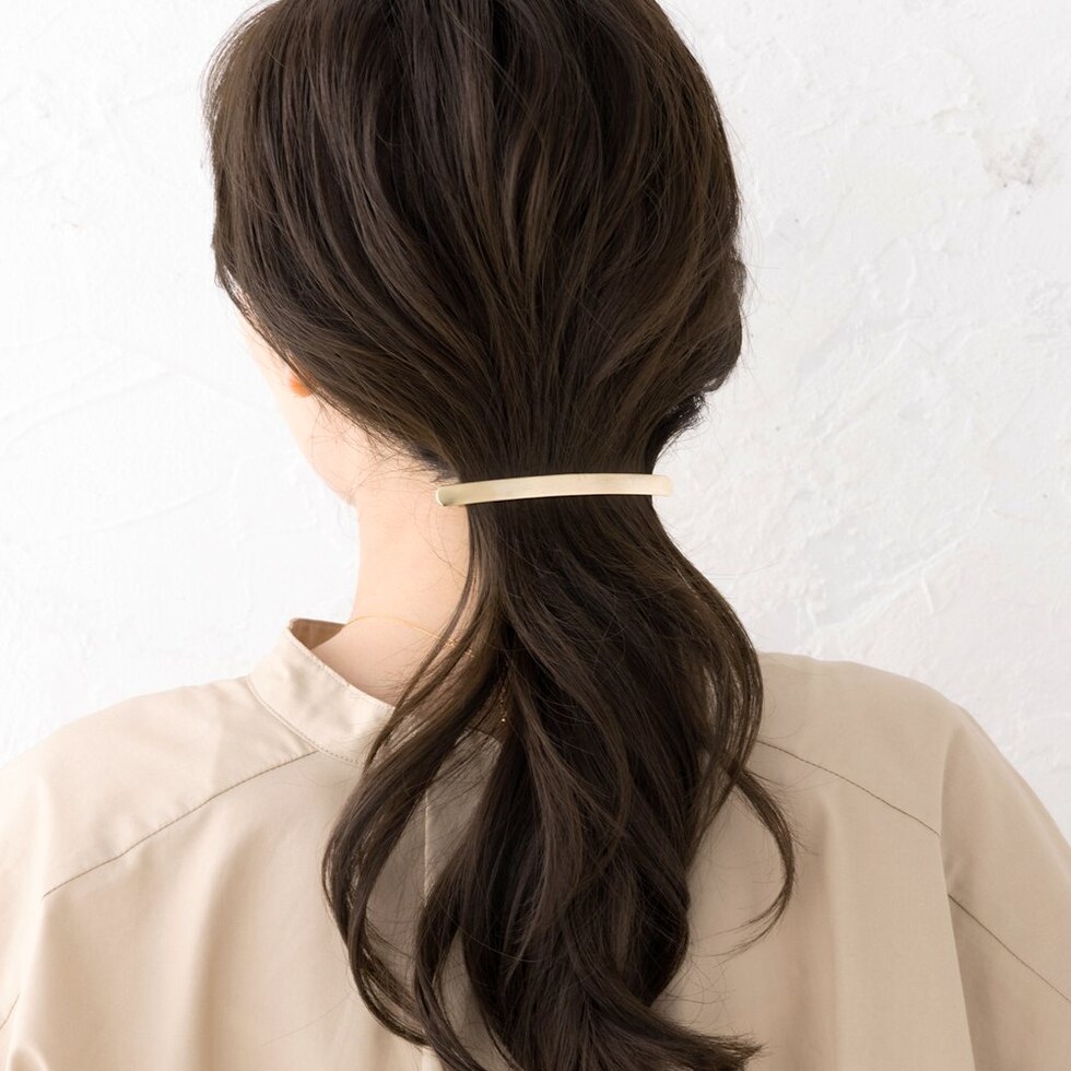 表面にヘアライン加工を施したシンプルなスティックバレッタ。