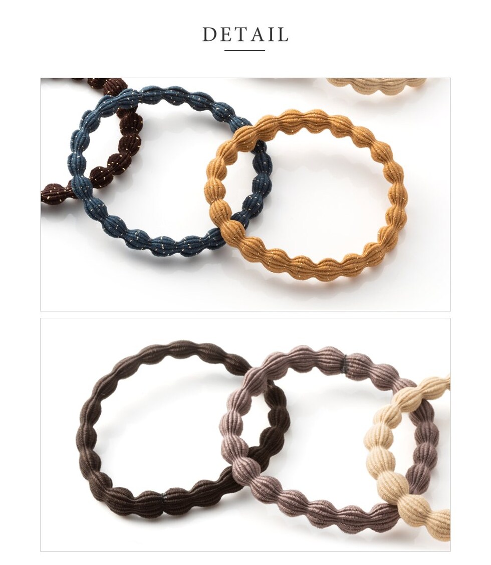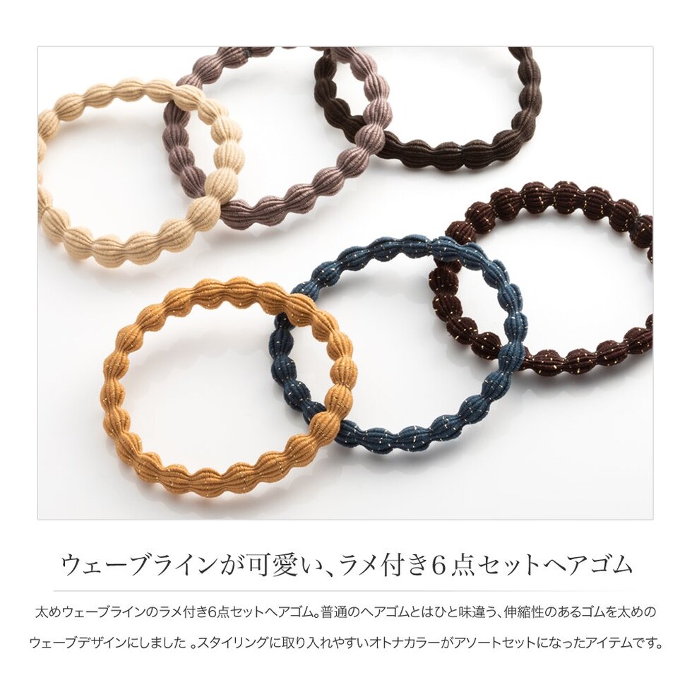 太めウェーブラインのラメ付き6点セットヘアゴム。