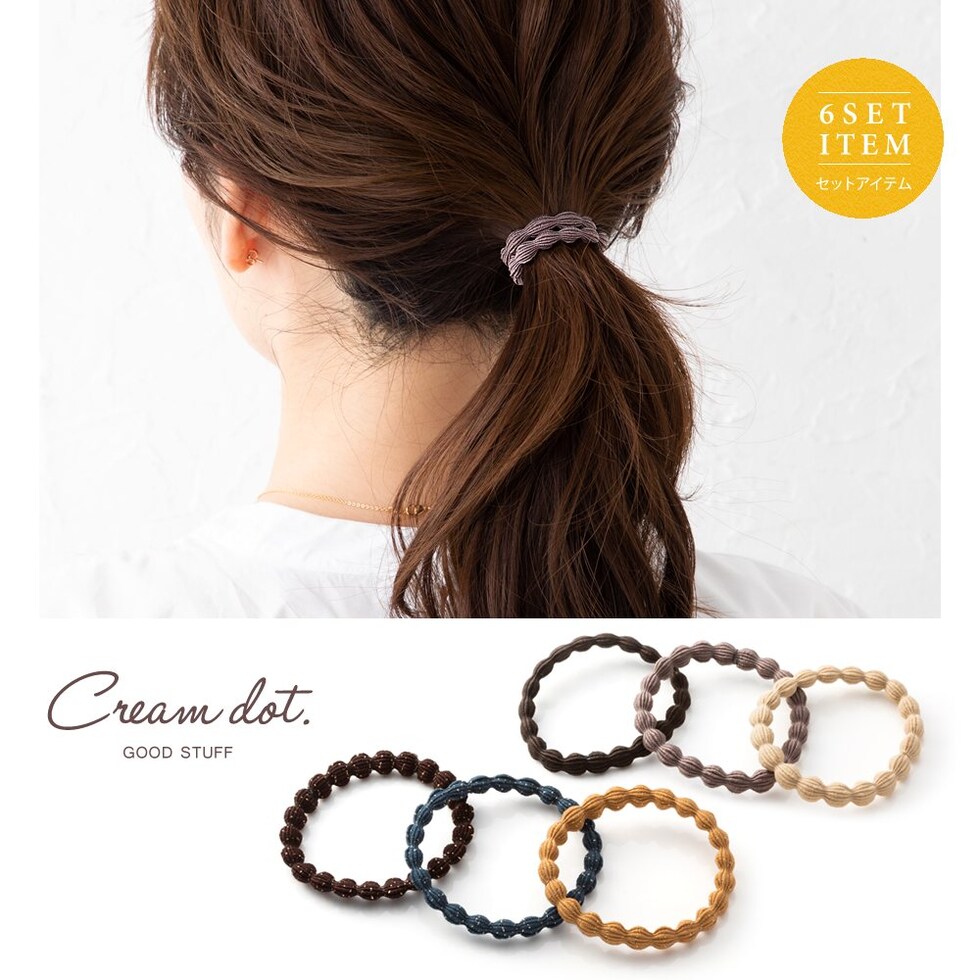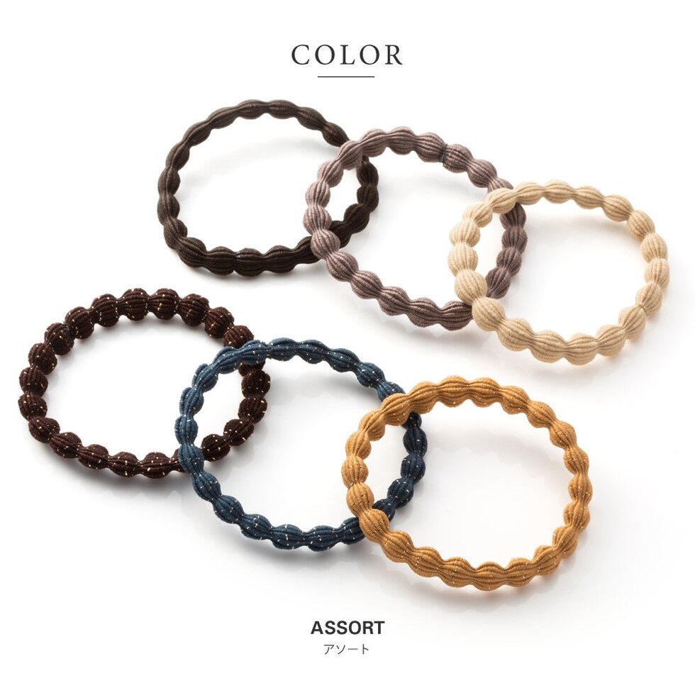 ヘアアクセサリー レディース 6色セット ヘアゴム ウェーブ ラメ キャメル cream dot ゆうパケット [アソート_ワンサイズ]