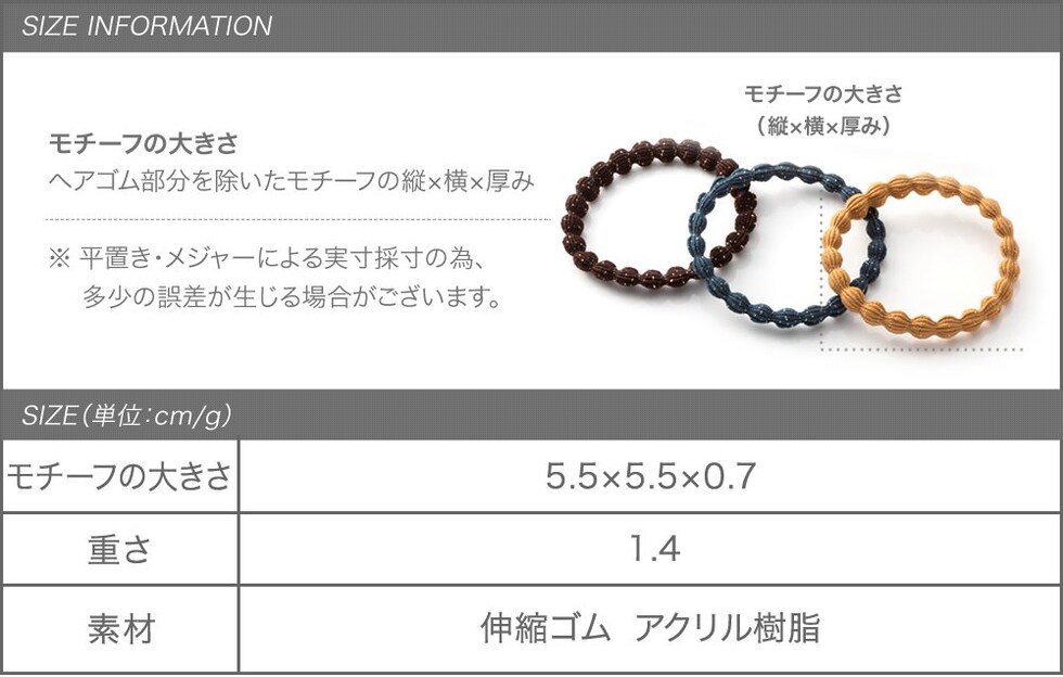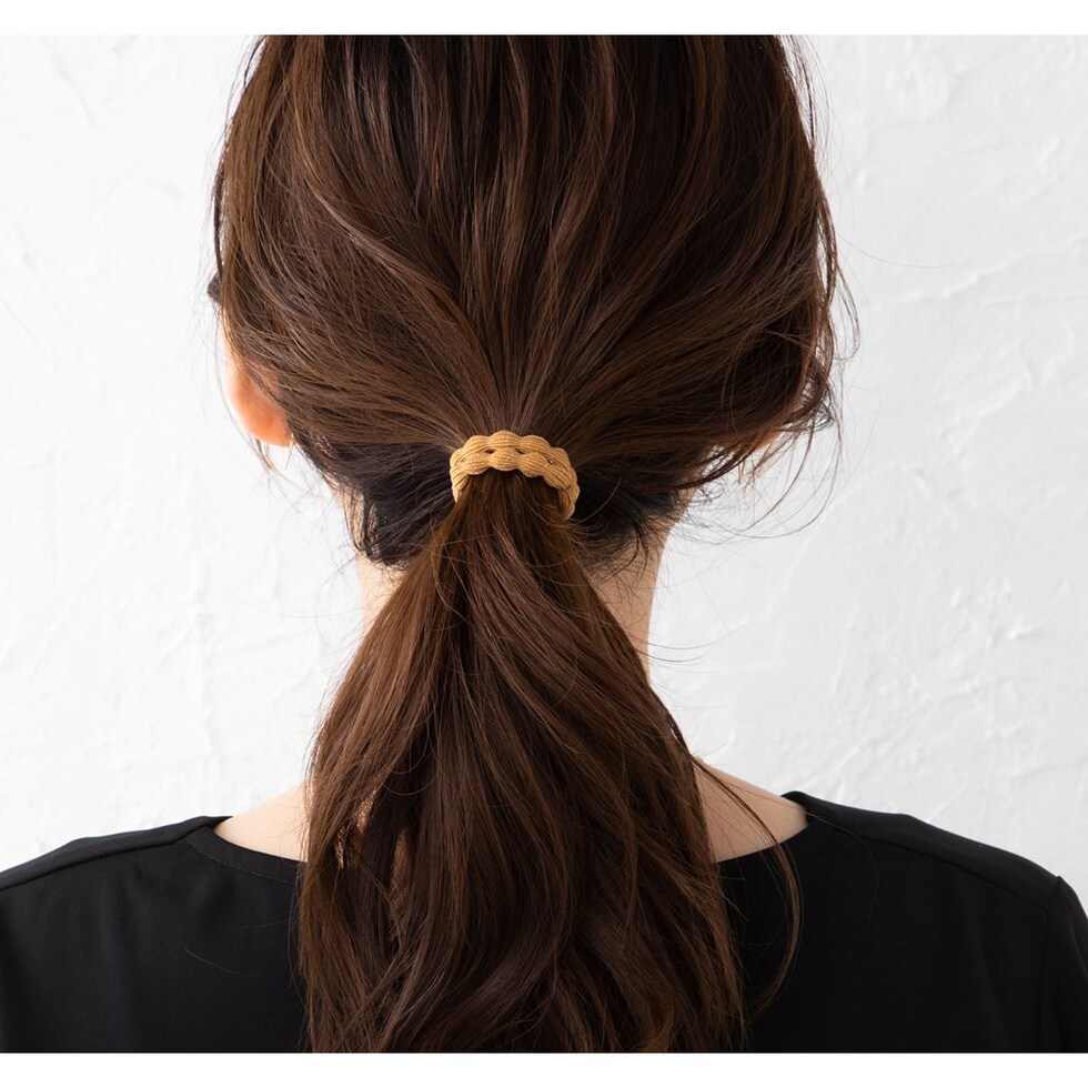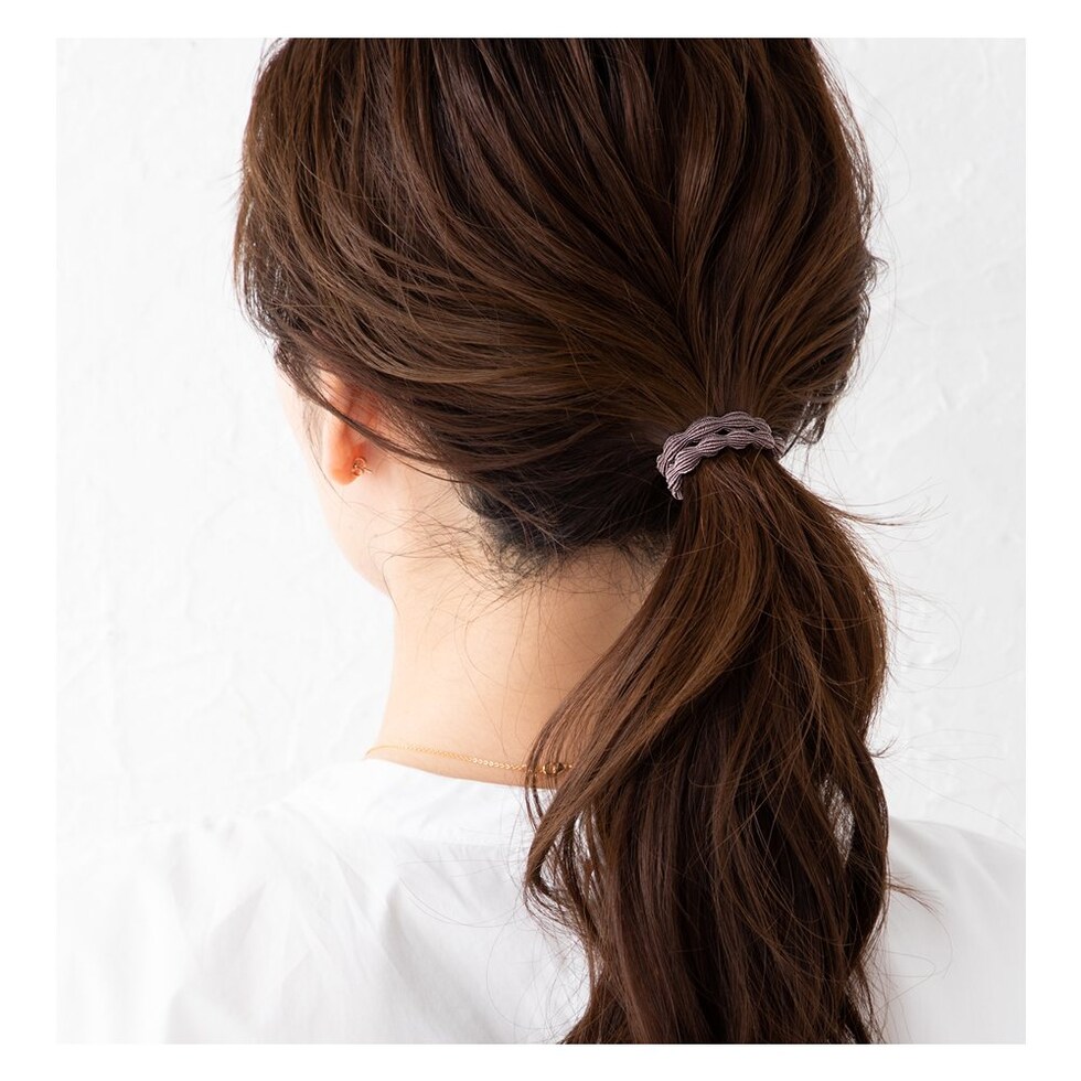 普通のヘアゴムとはひと味違う、伸縮性のあるゴムを太めのウェーブデザインにしました。