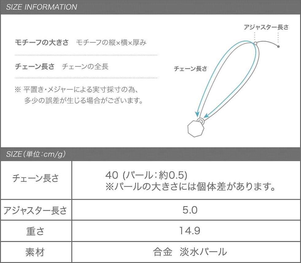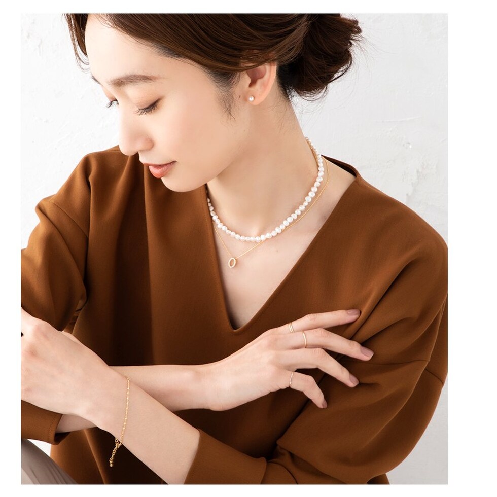ひと粒ひと粒違った形でキレイめになりすぎずに、カジュアルにもオケージョンにも合わせやすい使い勝手抜群のネックレスです。