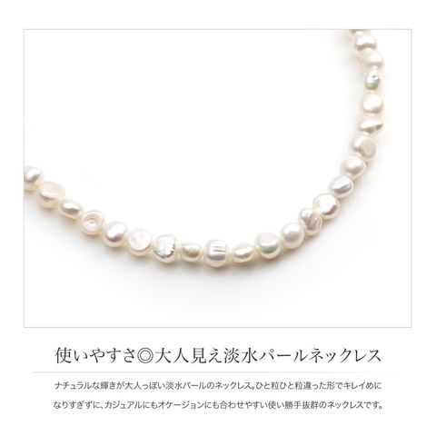 ナチュラルな輝きが大人っぽい淡水パールのネックレス。