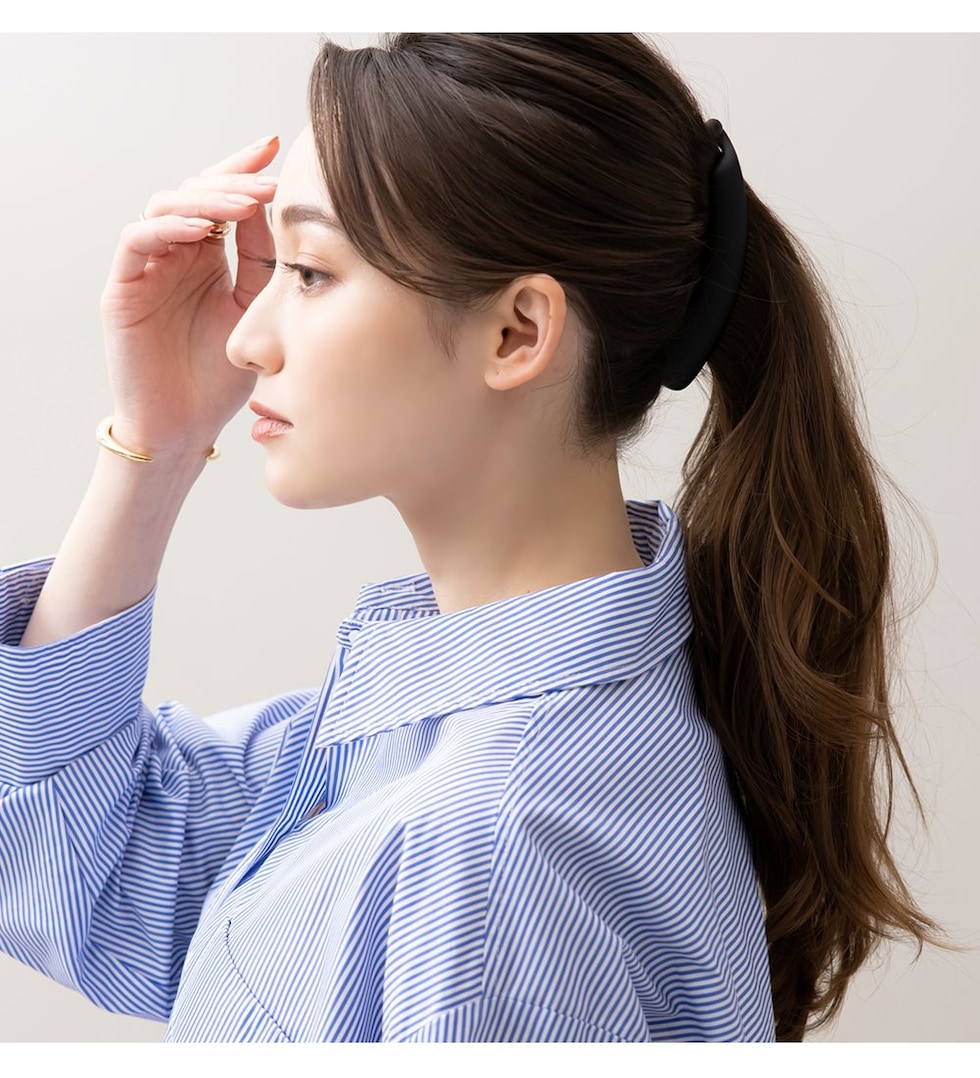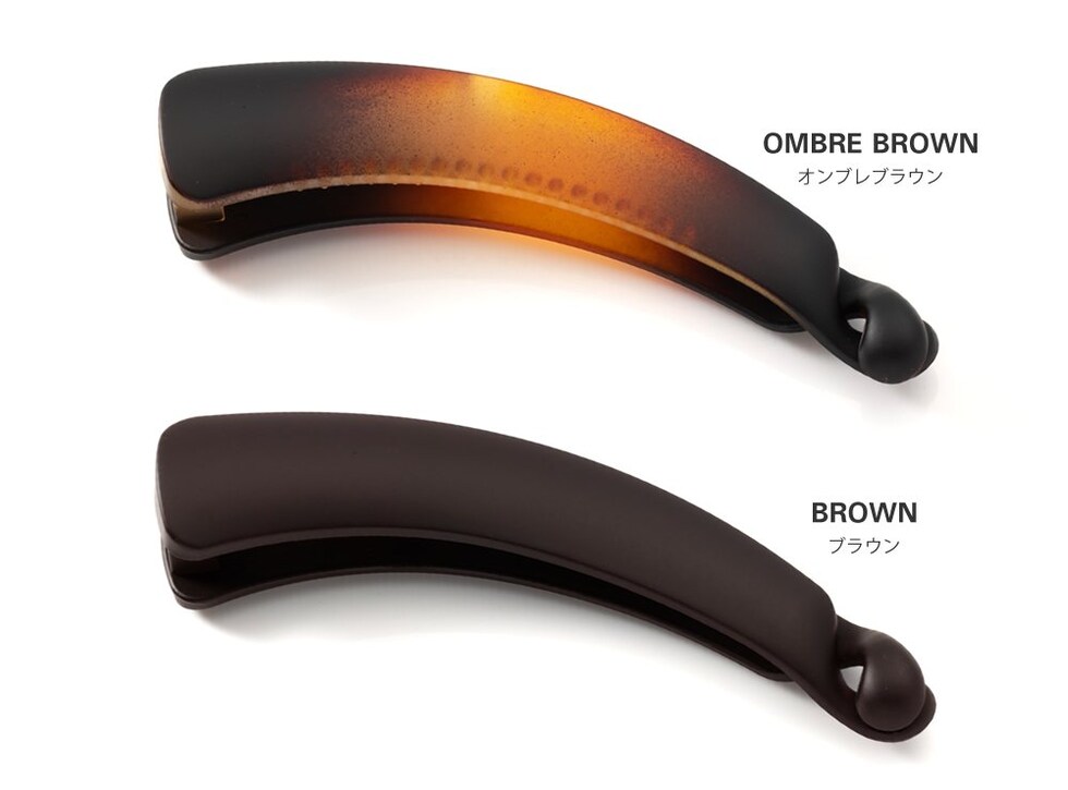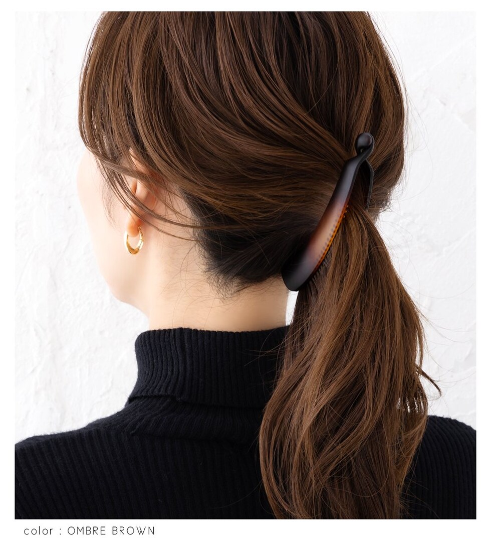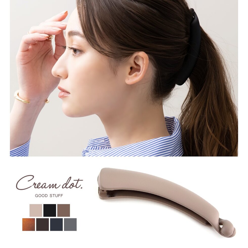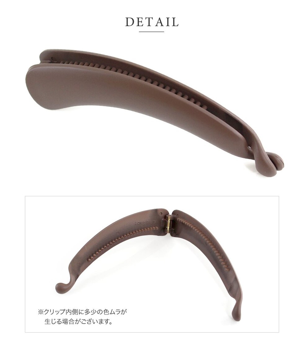 ニュアンスカラーと艶消し質感が大人っぽいバナナクリップ。オケージョンを選ばないシンプルなフォルムと大きめのサイジングで、カジュアルなデイリーコーデはもちろんオフィスシーンにも最適◎