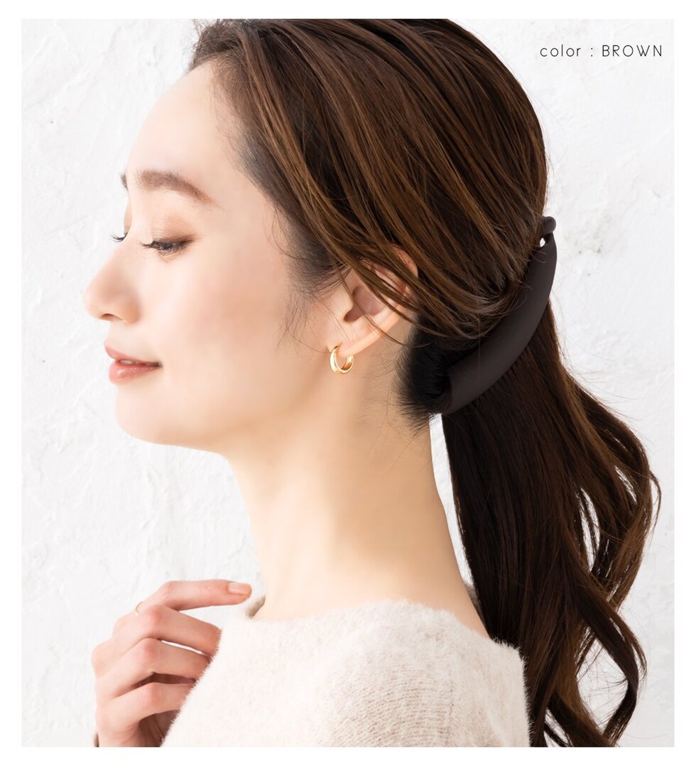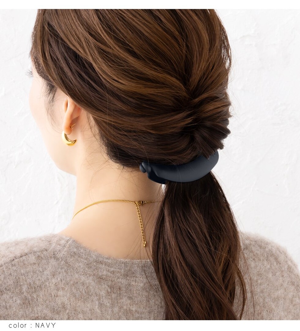 大振りの艶感クリップは主張しがち…。そんな時は、マットなくすみカラーをセレクトすれば大人可愛い印象に。ホールド力がしっかりしているから、デイリーユースに最適◎