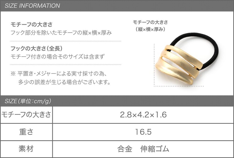歪んだカーブラインが魅力的な透かしデザインのメタルモチーフヘアゴム。ヴィンテージライクなくすみメタルがヘアに大人っぽいアクセントを添えてくれます。こなれ感たっぷりのデイリーユースなアイテム。
