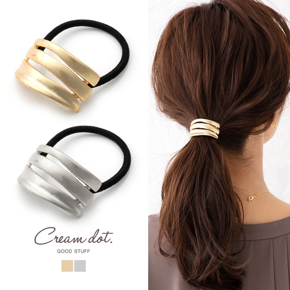 ヘアアクセサリー レディース ヘアゴム ヴィンテージ調 つや消し 艶消し 歪 変形 カーブ メタル cream dot ゆうパケット [シルバー_ワンサイズ]