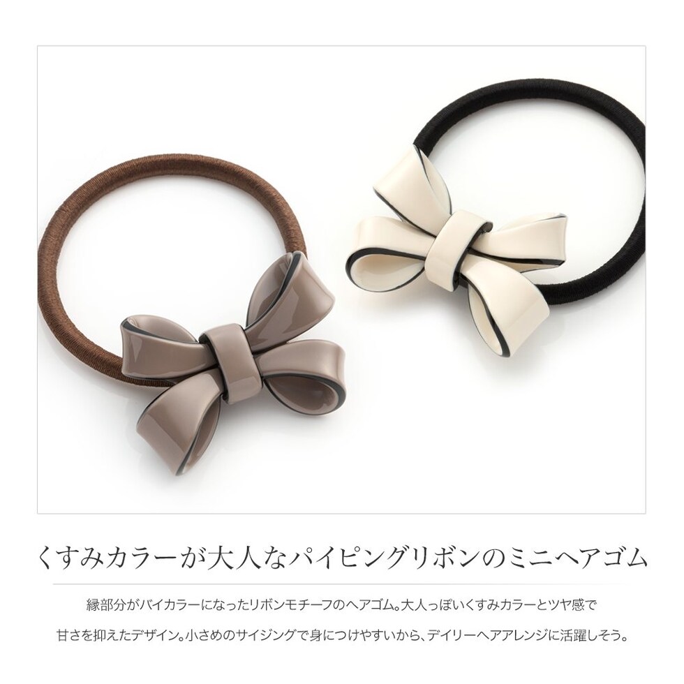 ヘアアクセサリー レディース ヘアゴム リボン パイピング バイカラー くすみカラー 黒 cream dot ゆうパケット [アイボリー_ワンサイズ]
